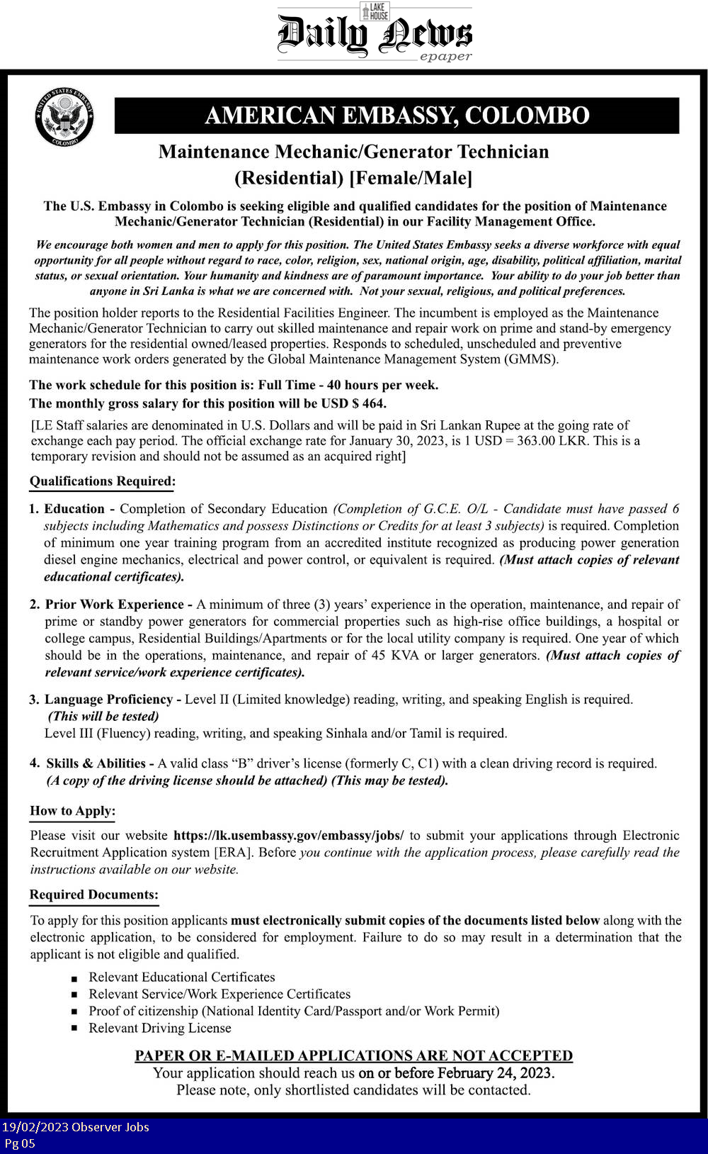 Maintenance Technician - American Embassy