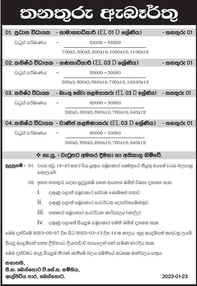 General Manager, Accountant, Bank Service Manager - Bentota Multi Purpose Co-operative society Ltd