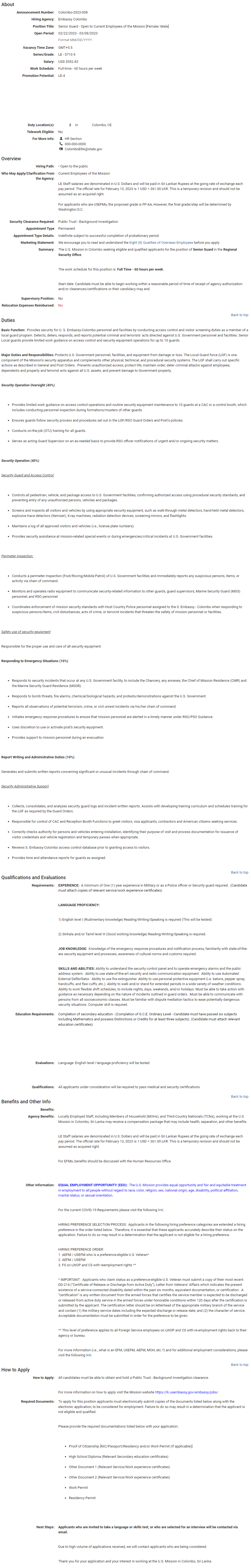 Senior Guard - American Embassy
