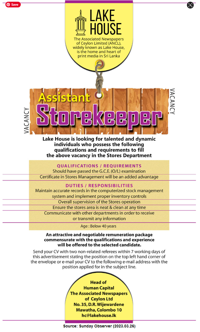 Assistant Store Keeper - Lake House