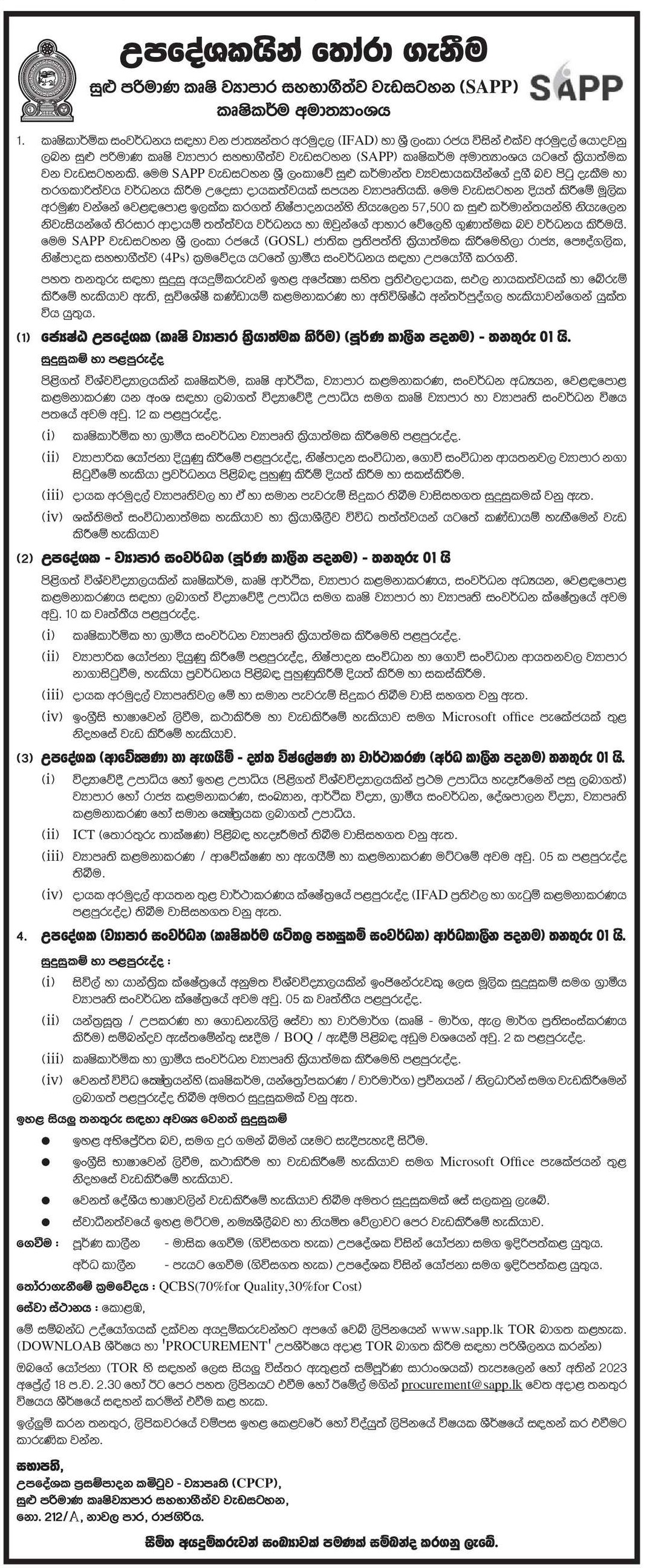 Senior Consultant, Consultant - Ministry of Agriculture