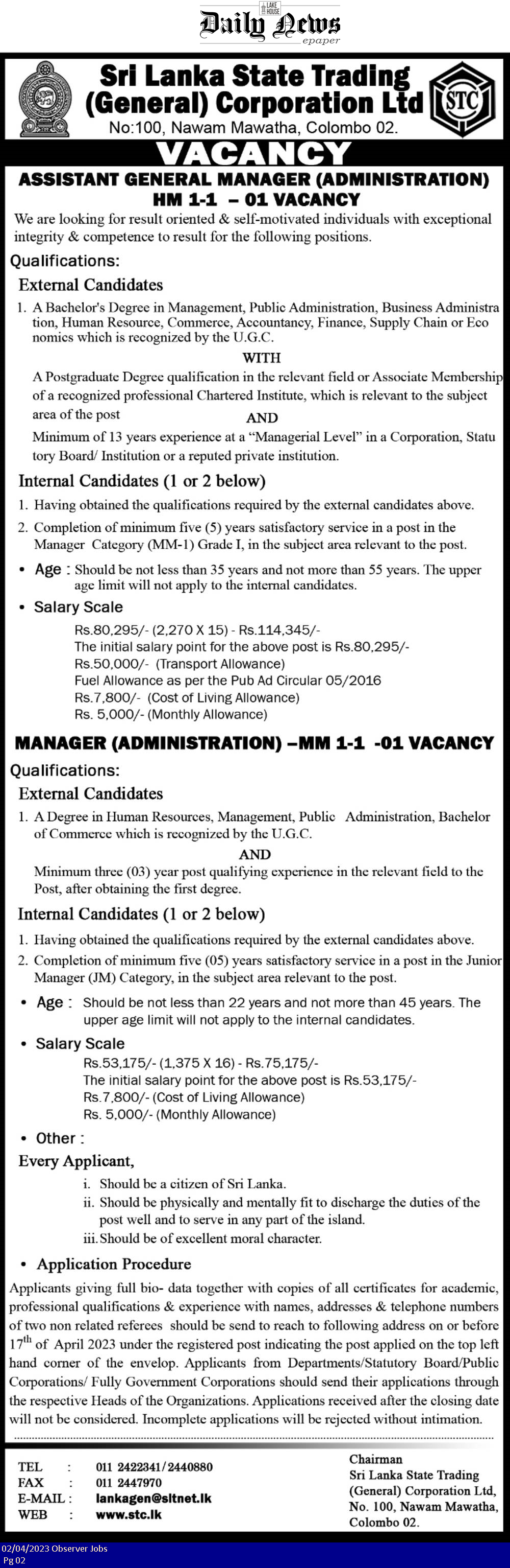 Assistant General Manager, Manager - Sri Lanka State Trading (General) Corporation