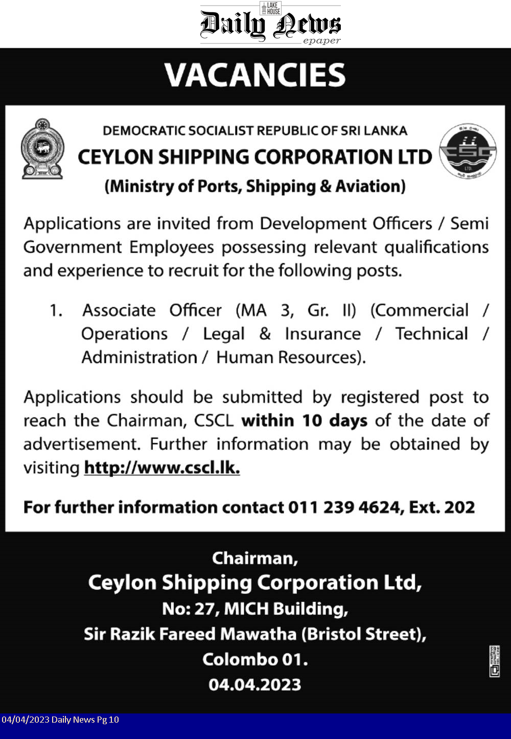 Associate Officer - Ceylon Shipping Corporation Ltd