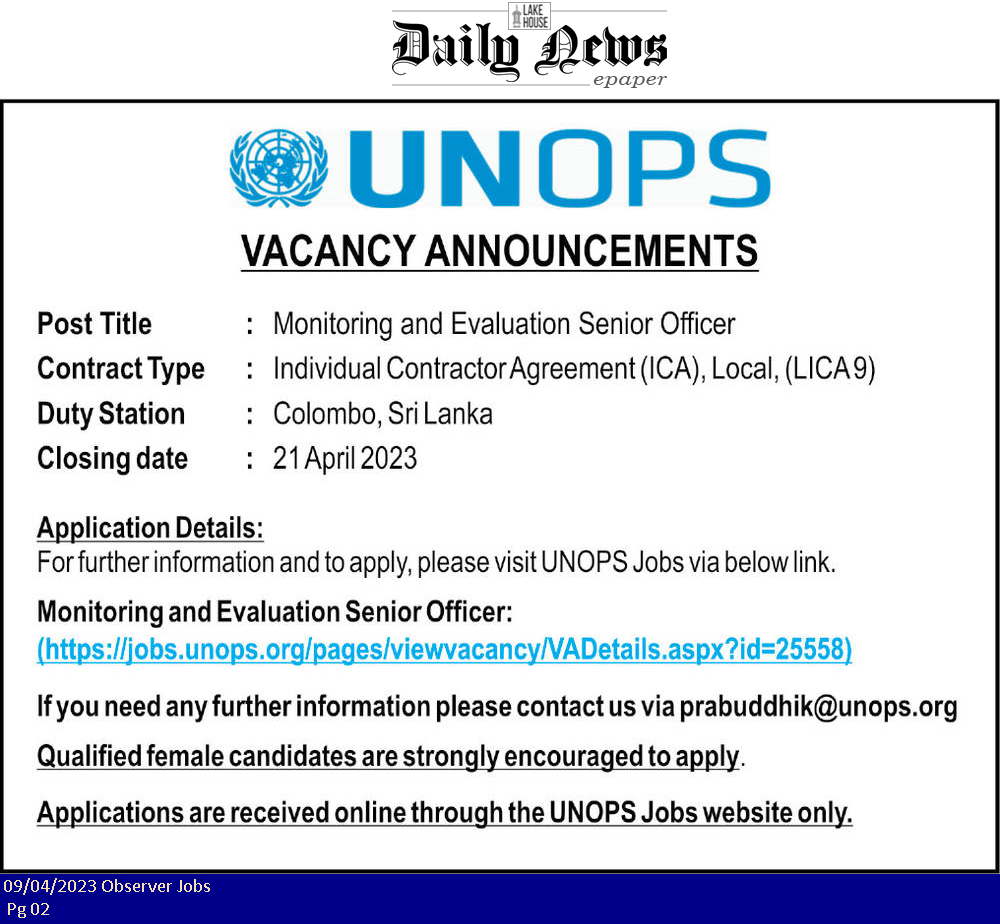 Monitoring and Evaluation Senior Officer - United Nations Office for Project Services