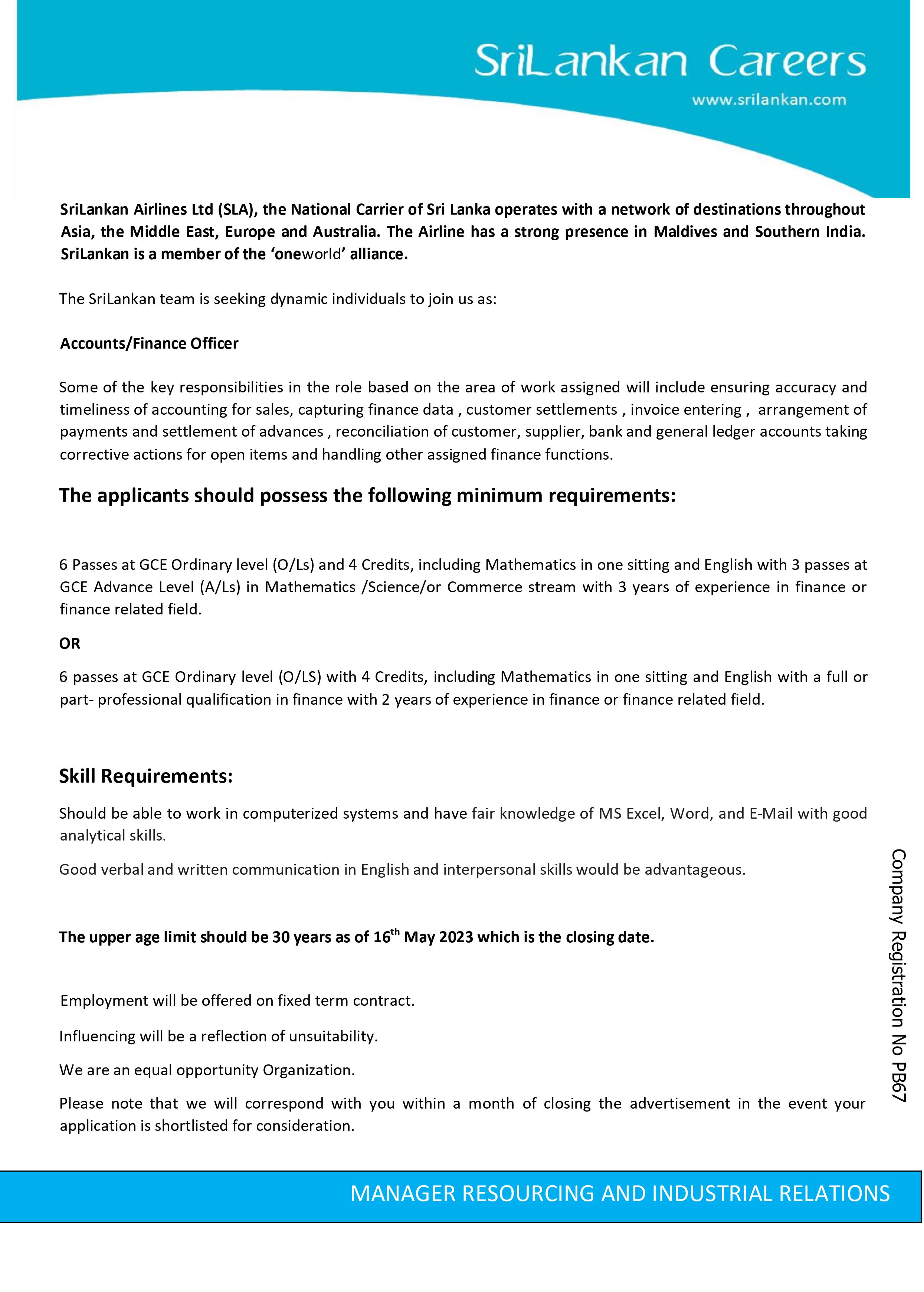 Accounts Officer - SriLankan Airlines