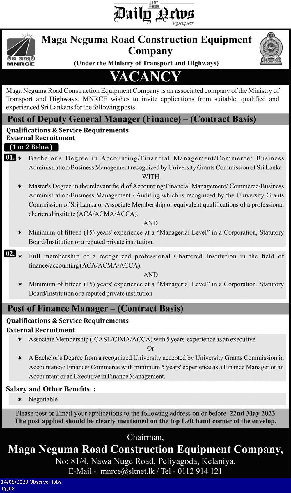 Deputy General Manager, Finance Manager - Maga Neguma Road Construction Equipment Company