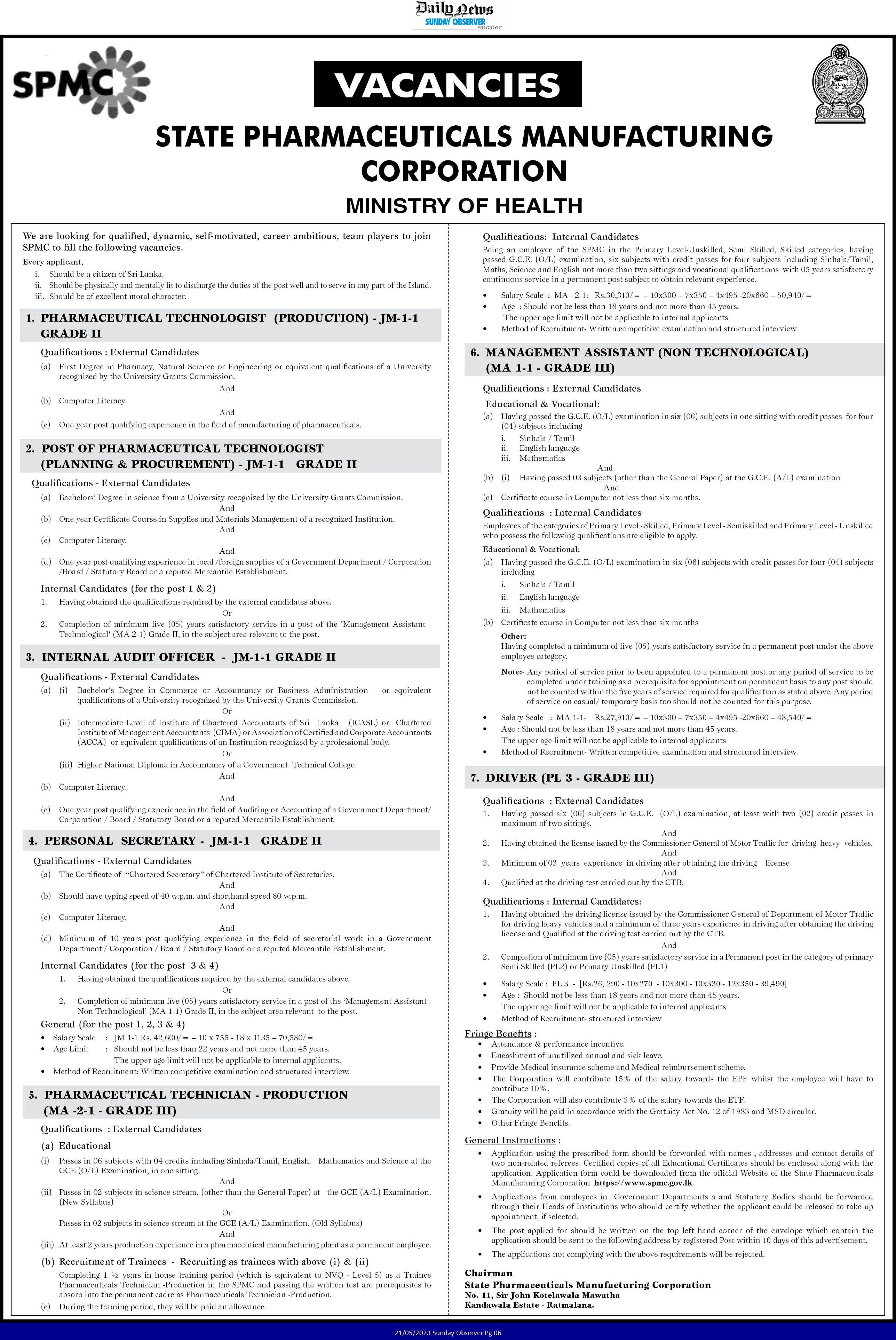 Internal Auditor, Management Assistant - State Pharmaceuticals Manufacturing Corporation