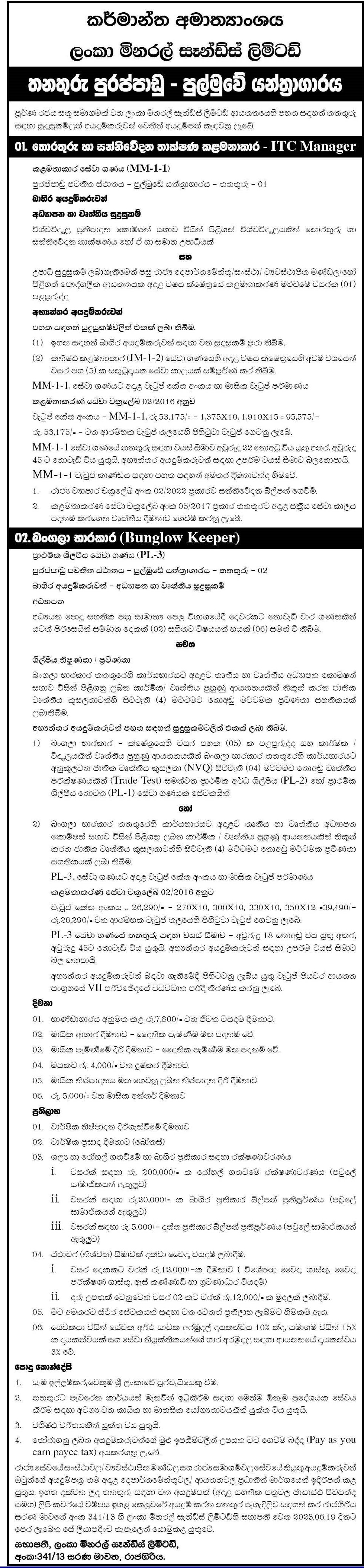 IT Manager, Bungalow Keeper - Lanka Mineral Sands Limited