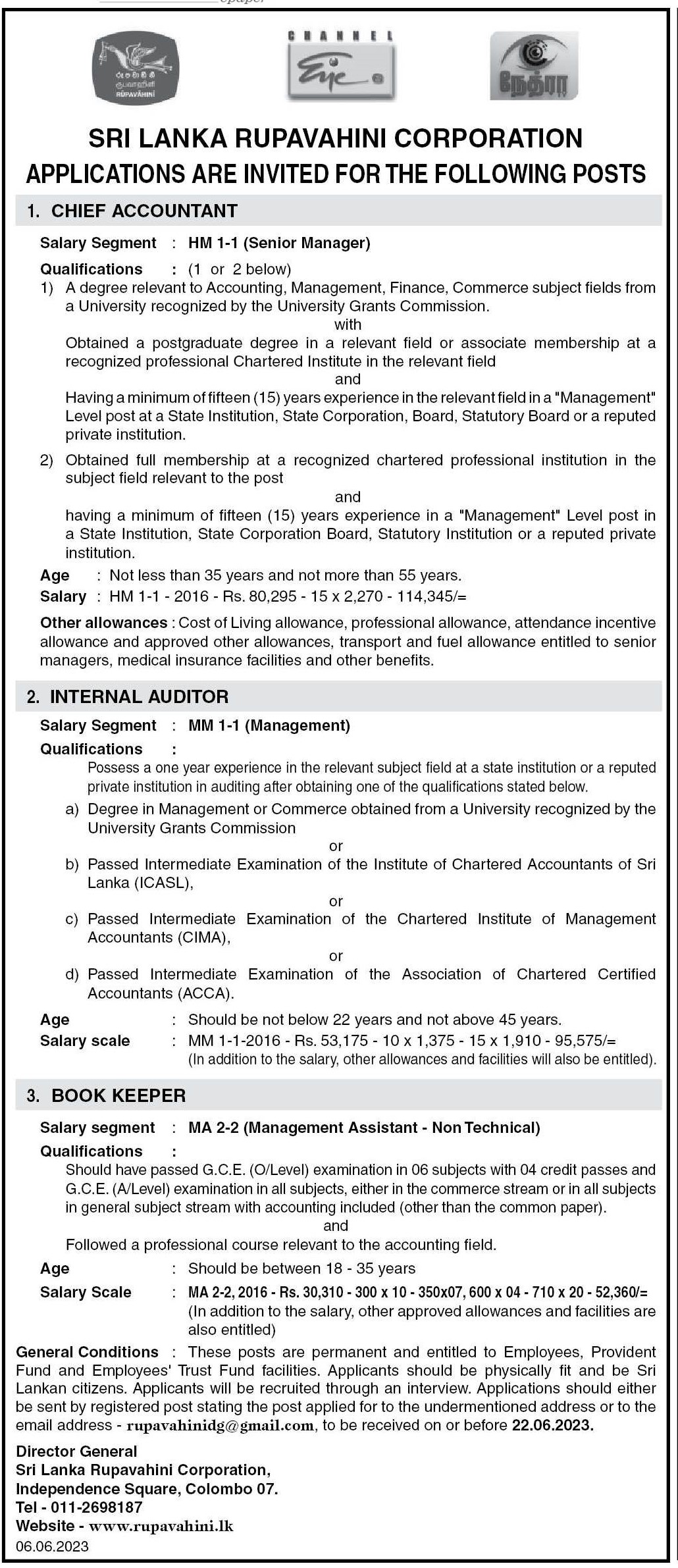 Chief Accountant, Internal Auditor, Book Keeper - Sri Lanka Rupavahini Corporation