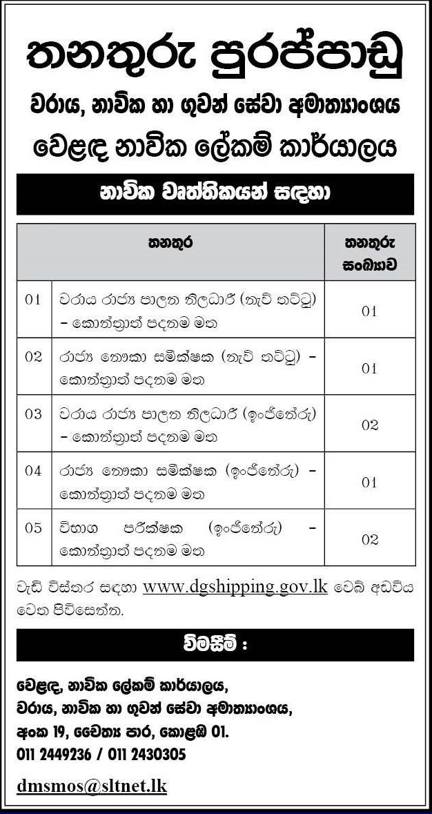 Port State Control Officer, State Ship Surveyor - Merchant Shipping Secretariat