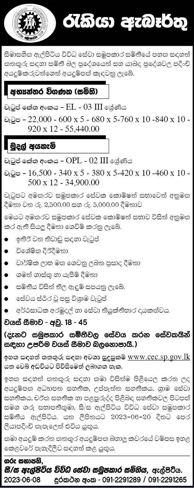 Internal Auditor, Cashier - Elpitiya Multipurpose Co-operative Society Limited