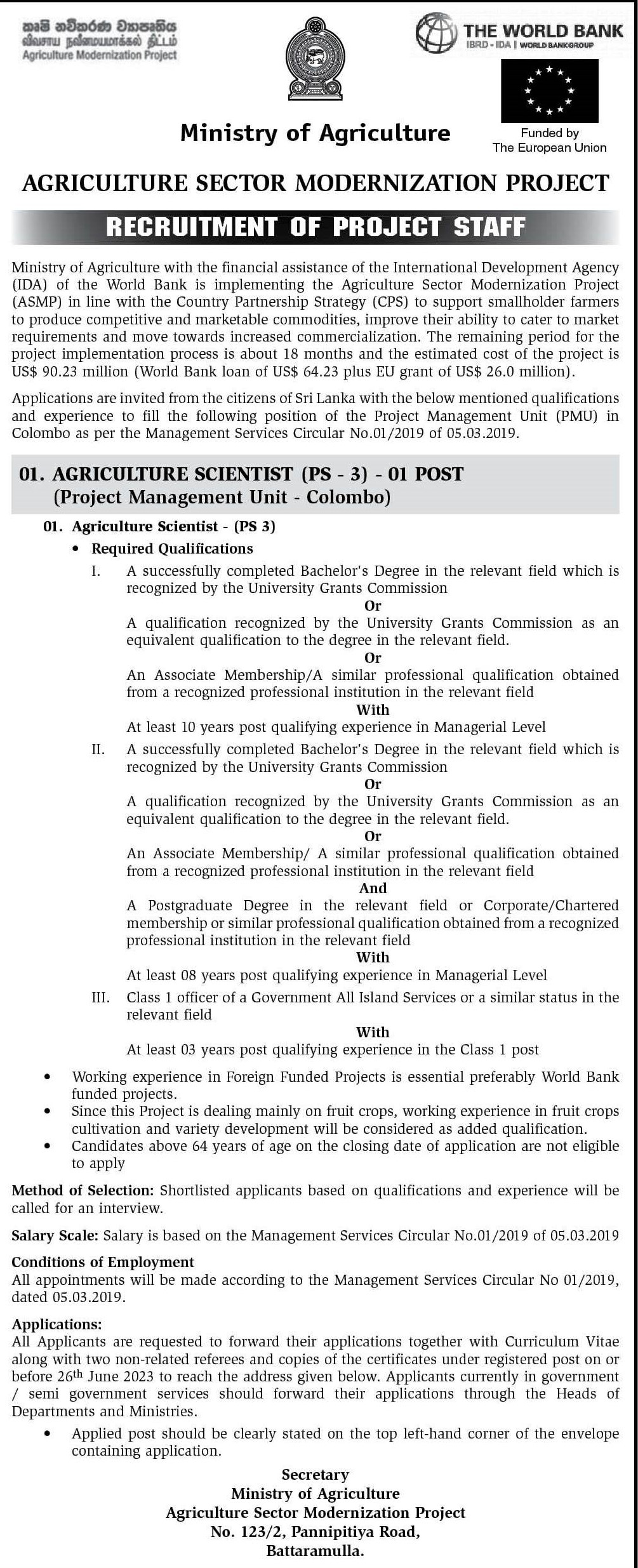 Agricultural Scientist - Ministry of Agriculture
