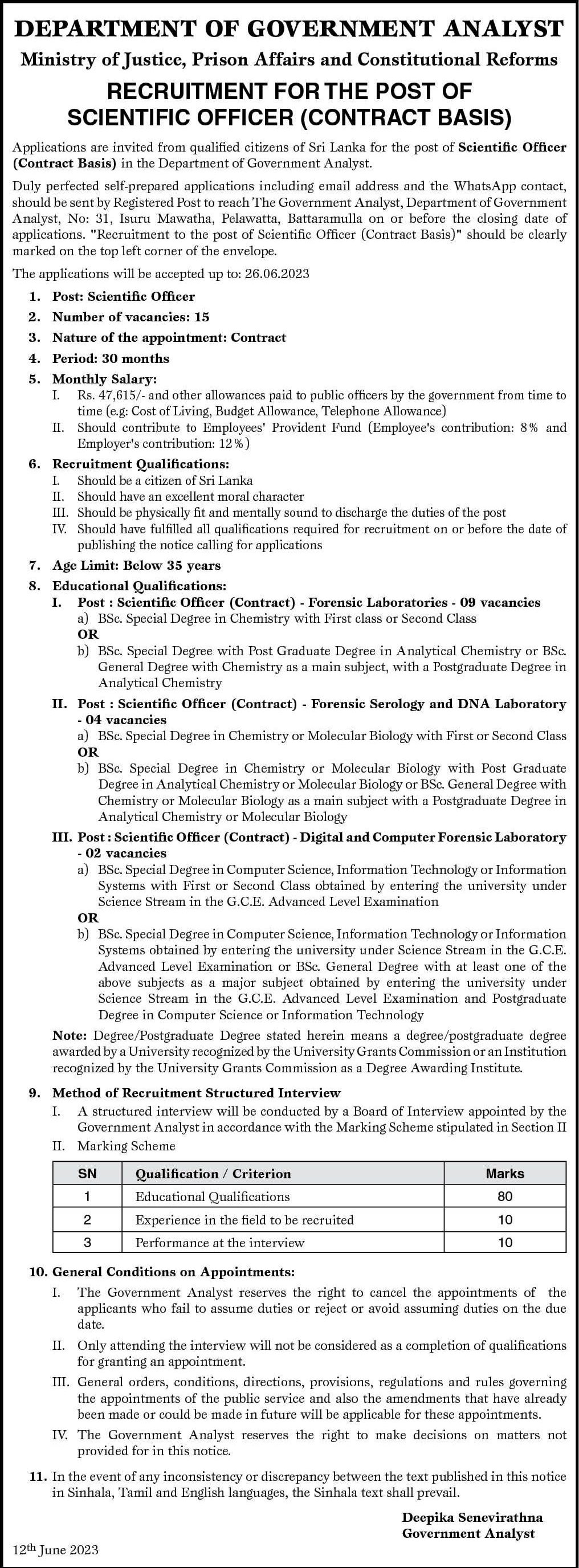 Scientific Officer - Ministry of Justice, Prison Affairs and Constitutional Reforms