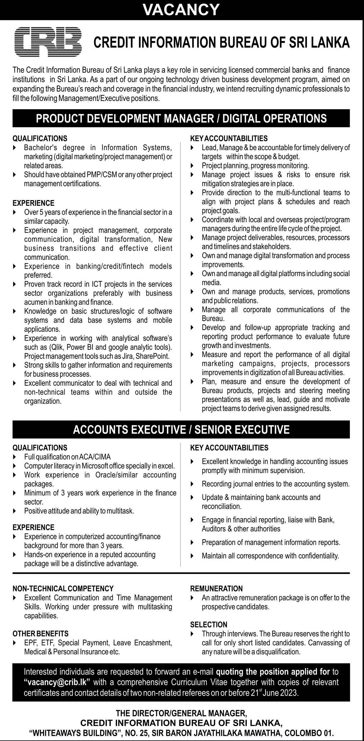 Product Development Manager, Accounts Executive - Co-Operative Rural Bank