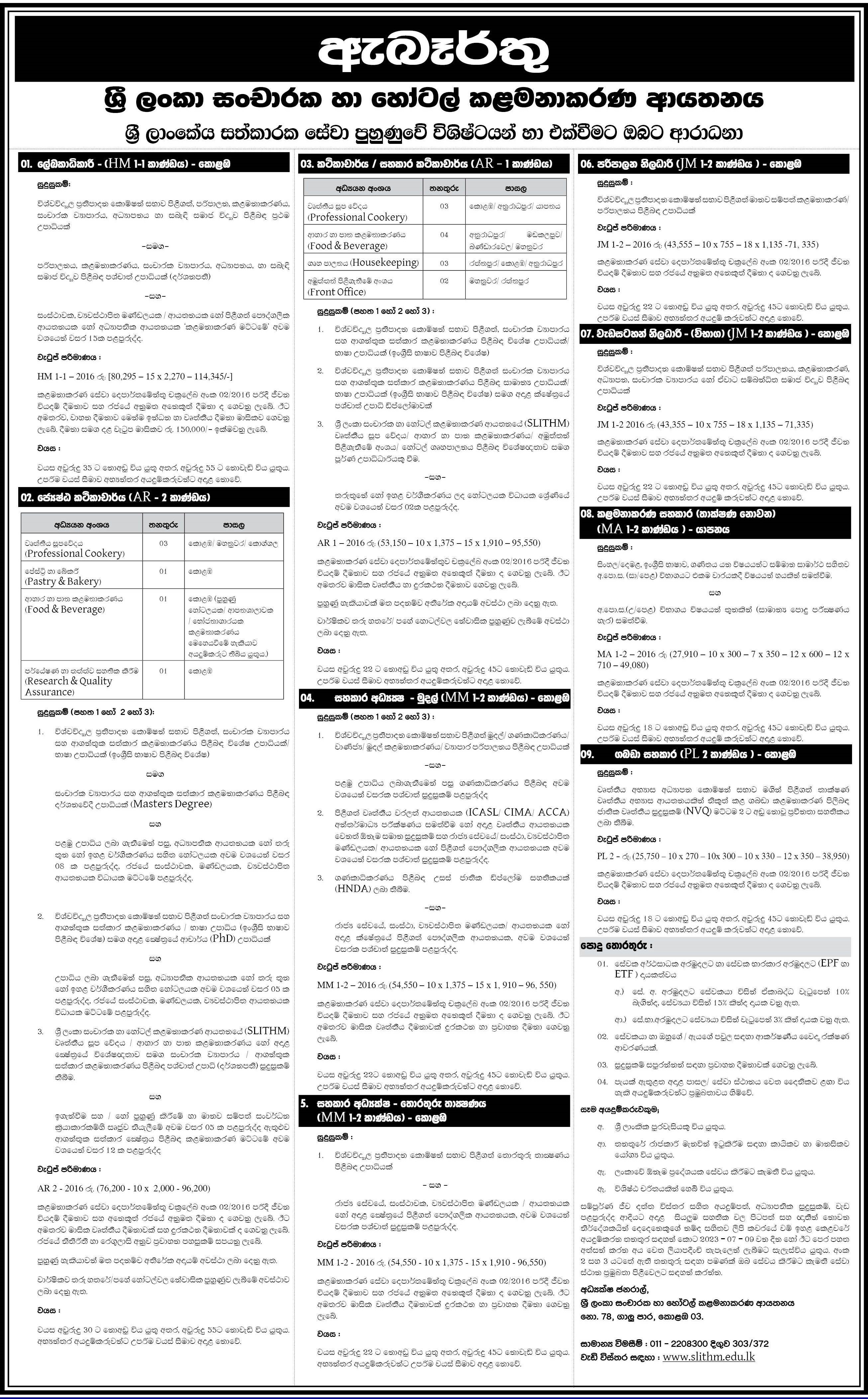 Registrar, Senior Lecturer, Lecturer - Sri Lanka Institute of Tourism & Hotel Management