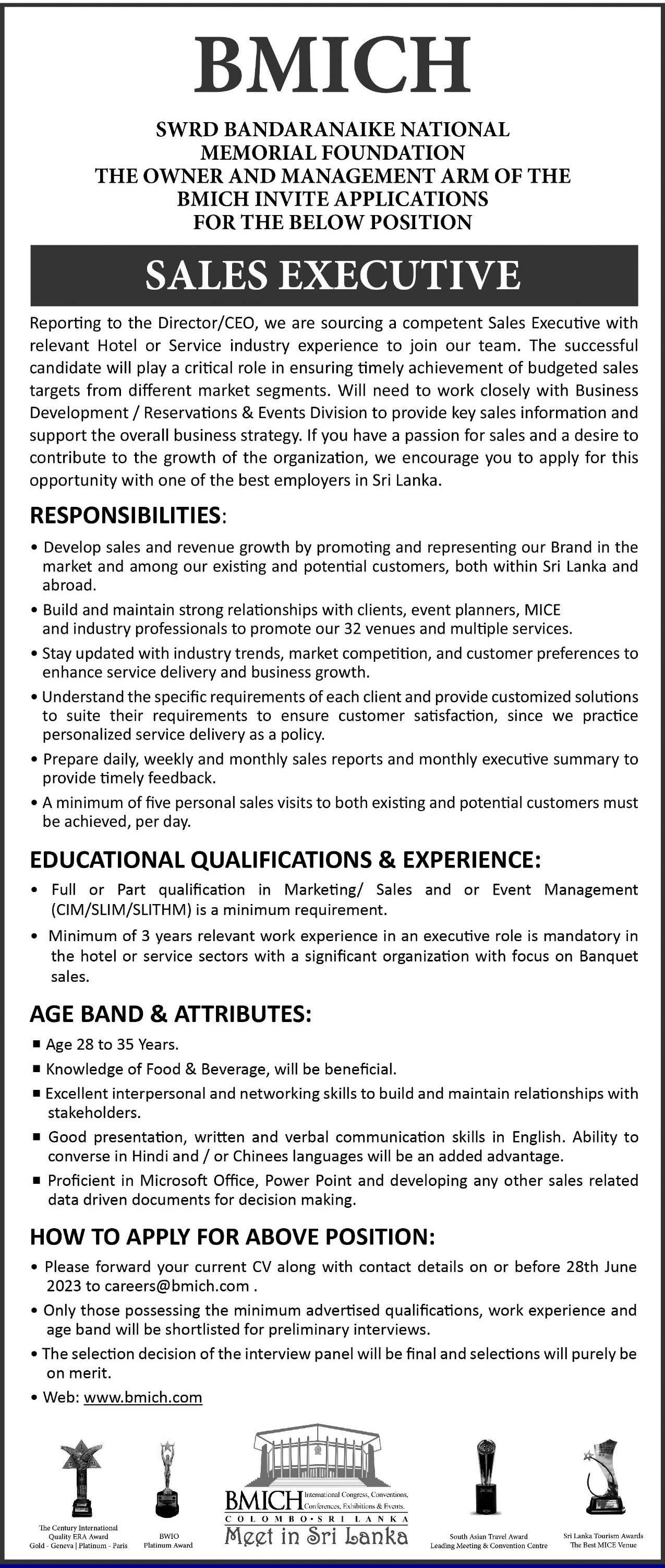Sales Executive - Bandaranaike Memorial International Conference Hall