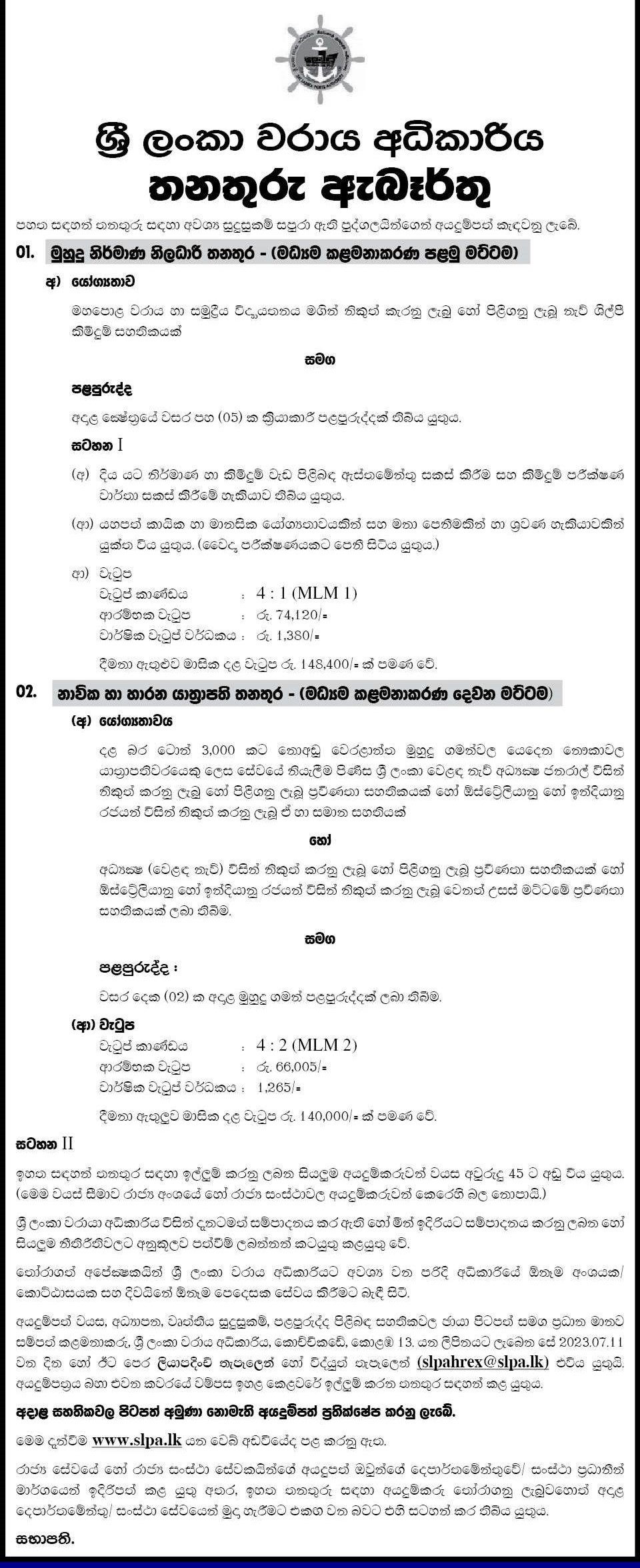 Maritime Construction Officer, Assistant Navigation & Dredging Master - Sri Lanka Ports Authority