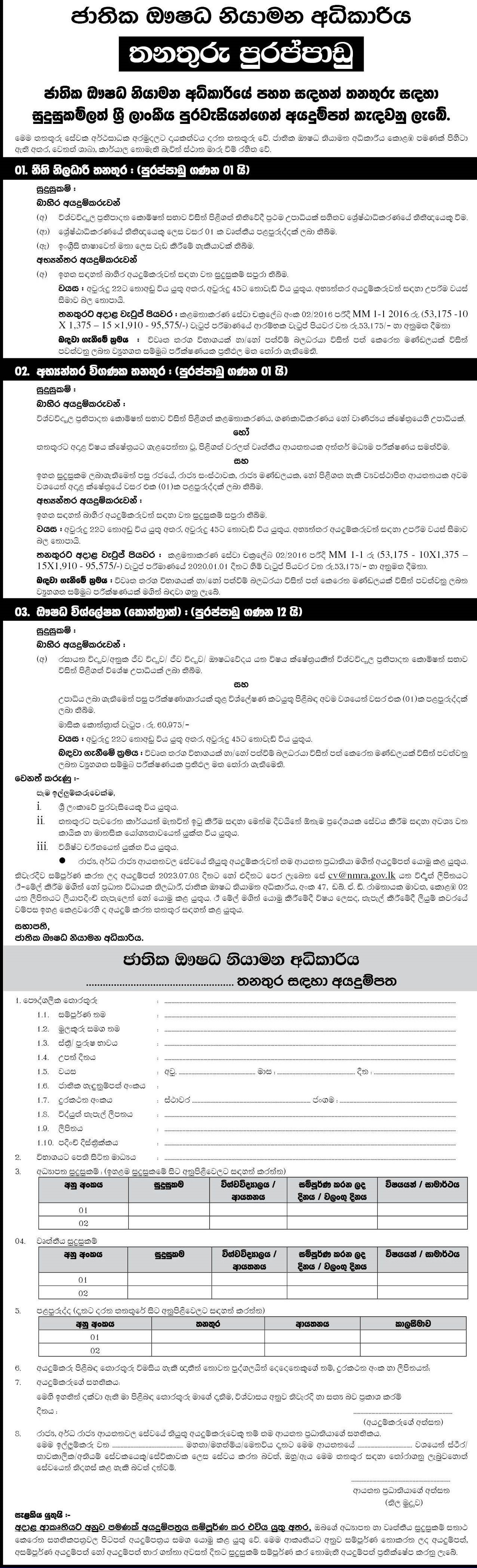 Legal Officer, Internal Auditor, Pharmaceutical Analyst - National Medicines Regulatory Authority (NMRA)