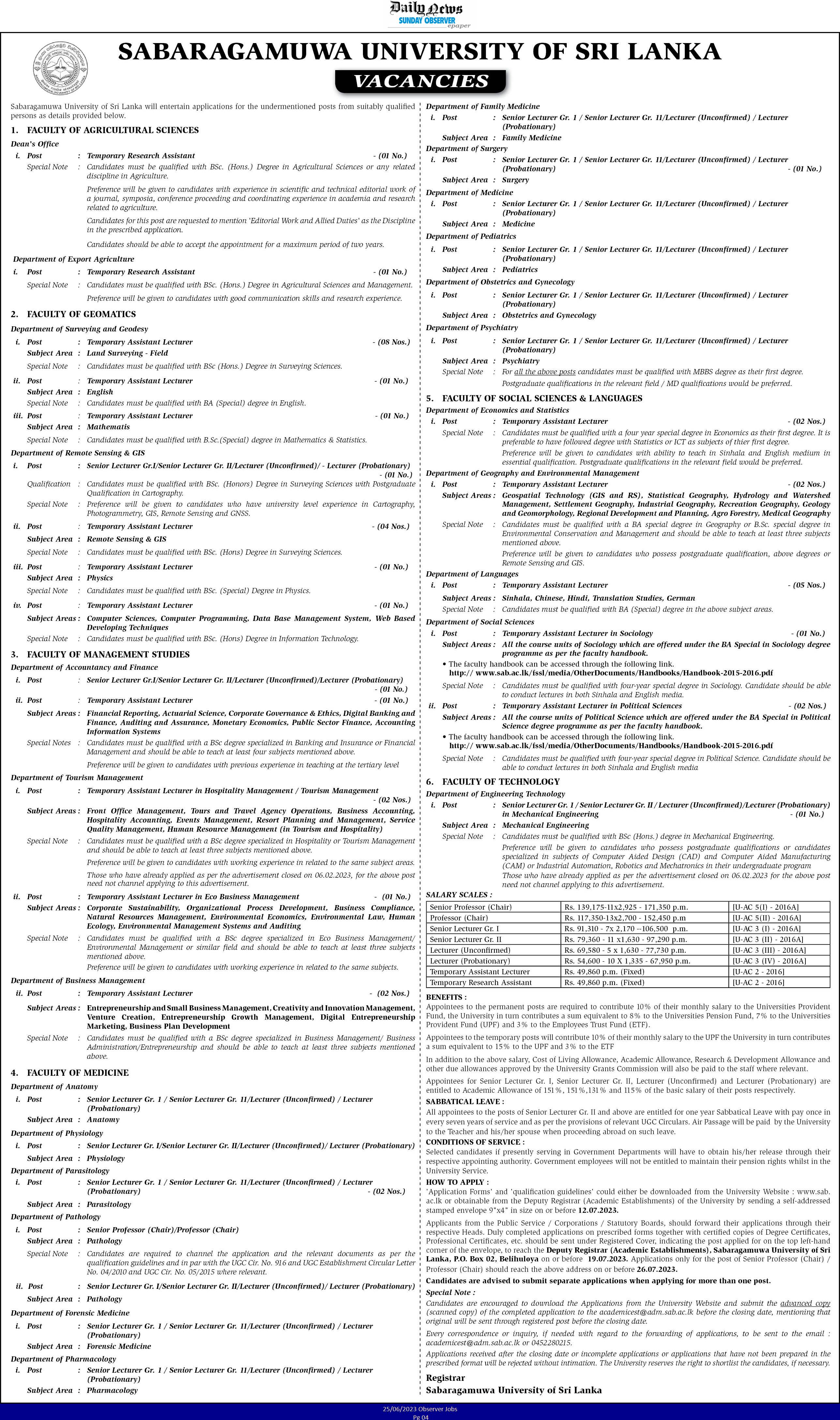 Research Assistant, Assistant Lecturer, Senior Lecturer - Sabaragamuwa University
