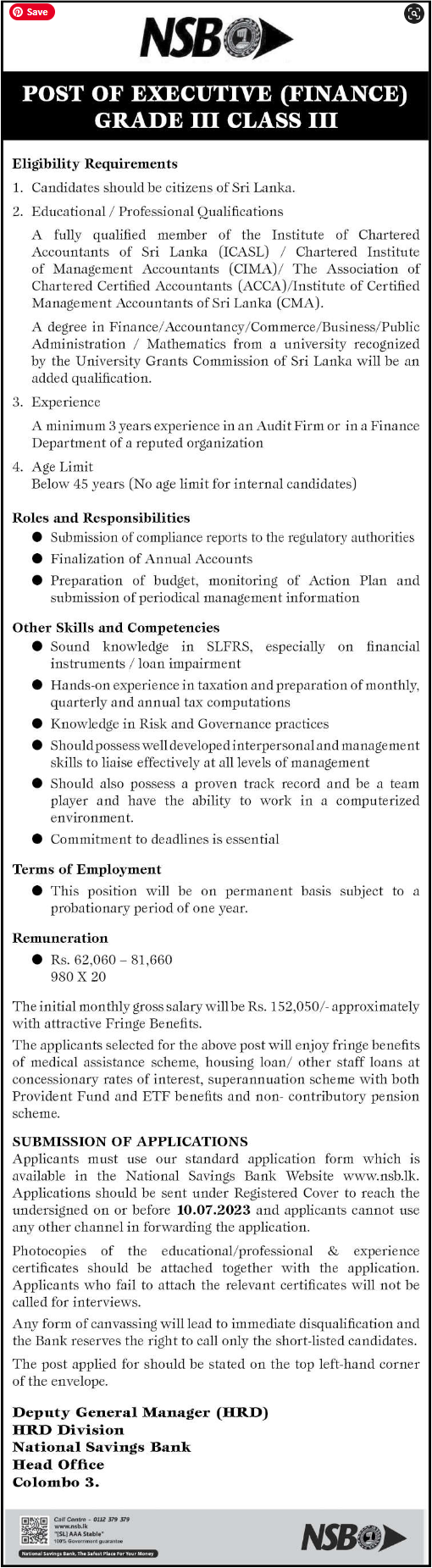 Executive - National Savings Bank