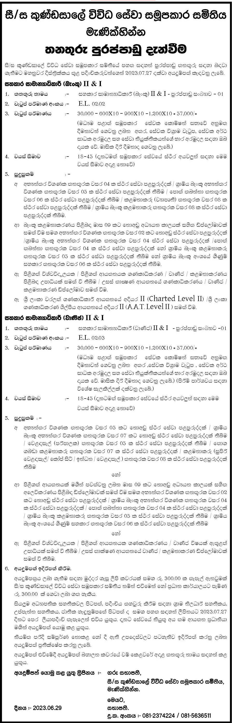 Assistant General Manager - Kundasale Multipurpose Co-Operative Society Limited