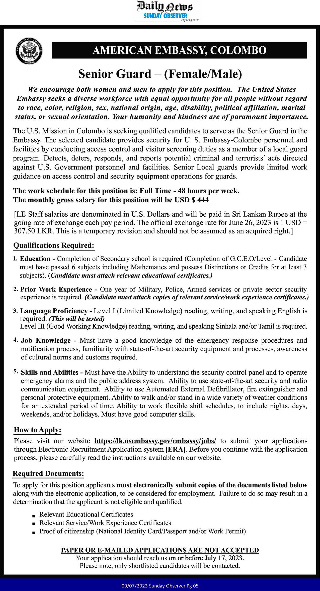 Senior Guard - American Embassy