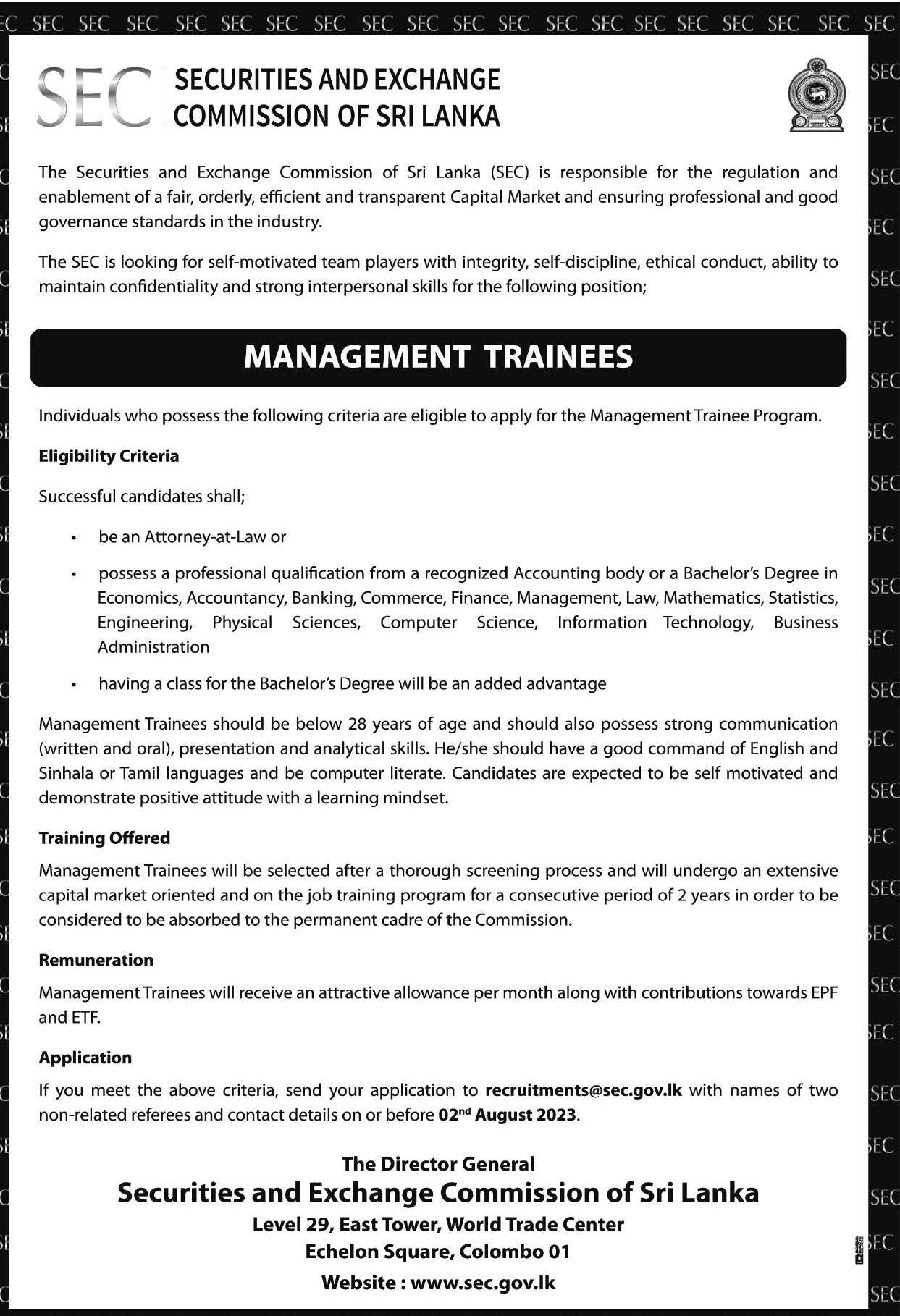 Management Trainee - Securities and Exchange Commission of Sri Lanka