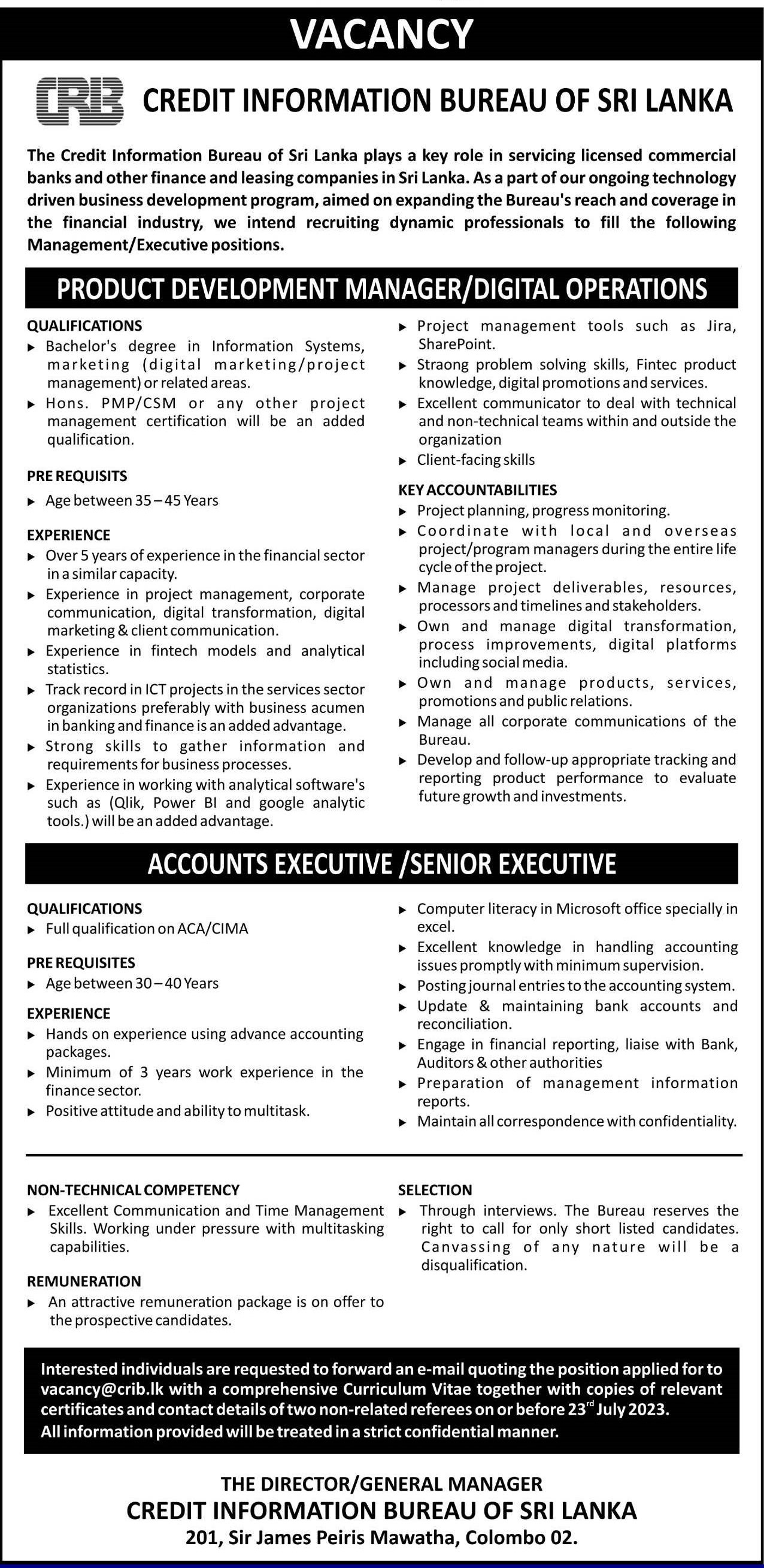 Product Development Manager, Accounts Executive - Co-Operative Rural Bank