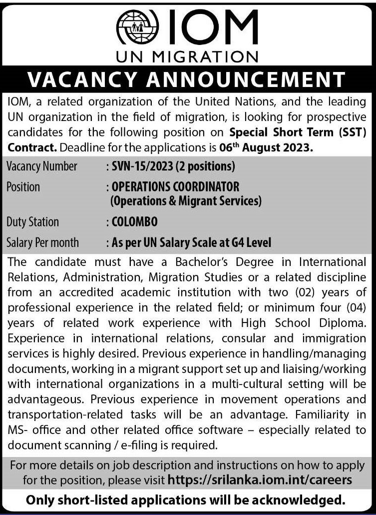 Operation Coordinator - International Organization for Migration