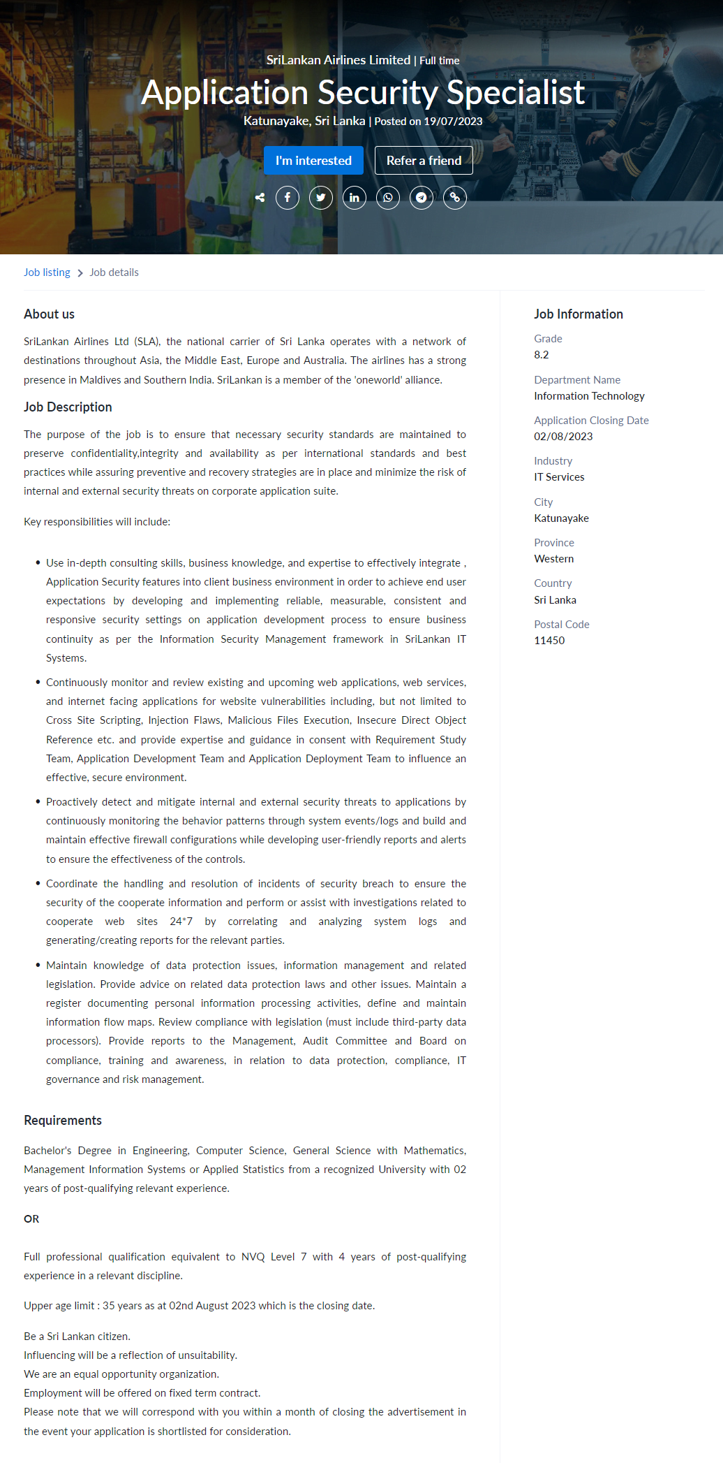 Application Security Specialist - SriLankan Airlines