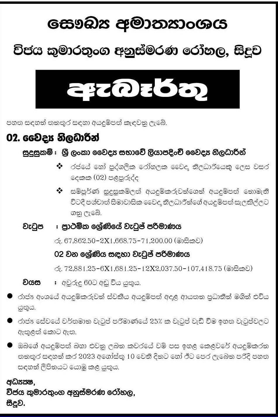 Medical Officer - Wijaya Kumaratunga Memorial Hospital