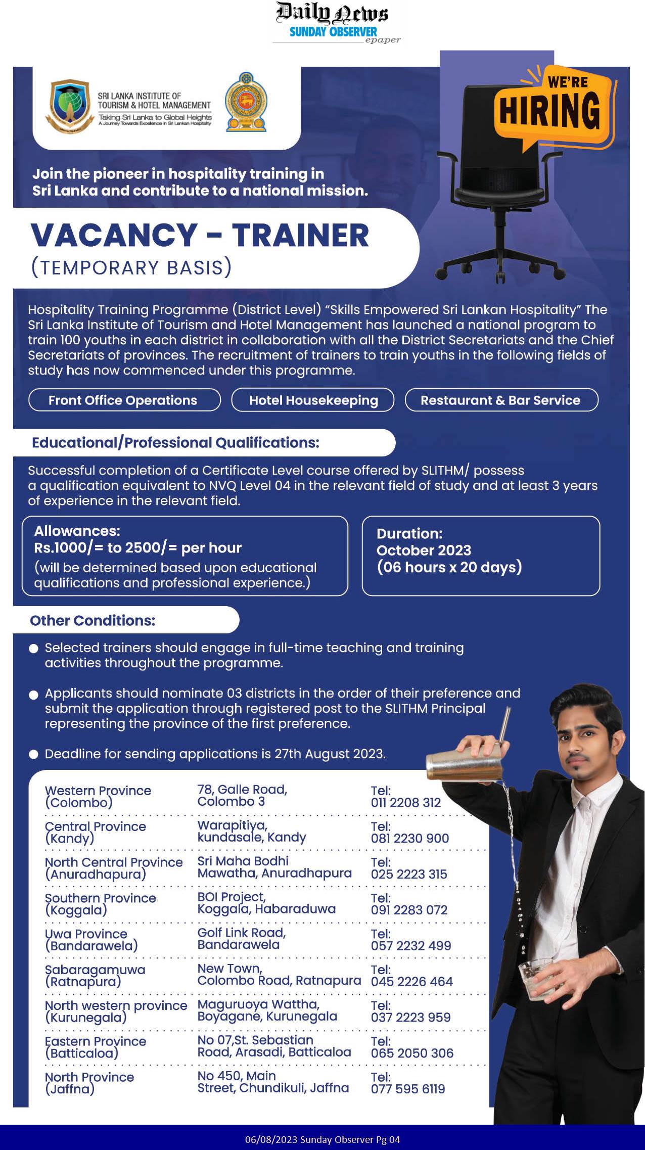 Trainer - Sri Lanka Institute of Tourism & Hotel Management