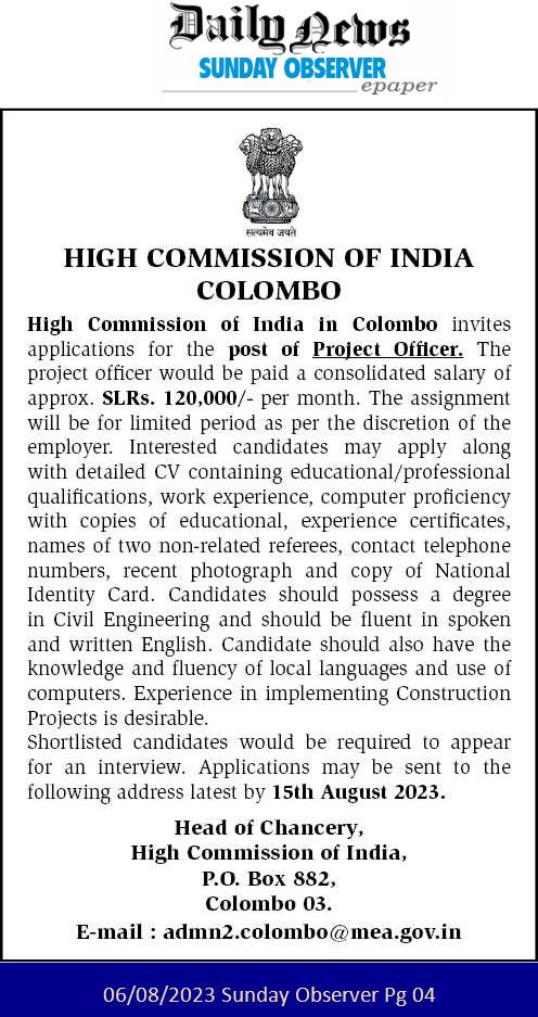 Project Officer - High Commission of India