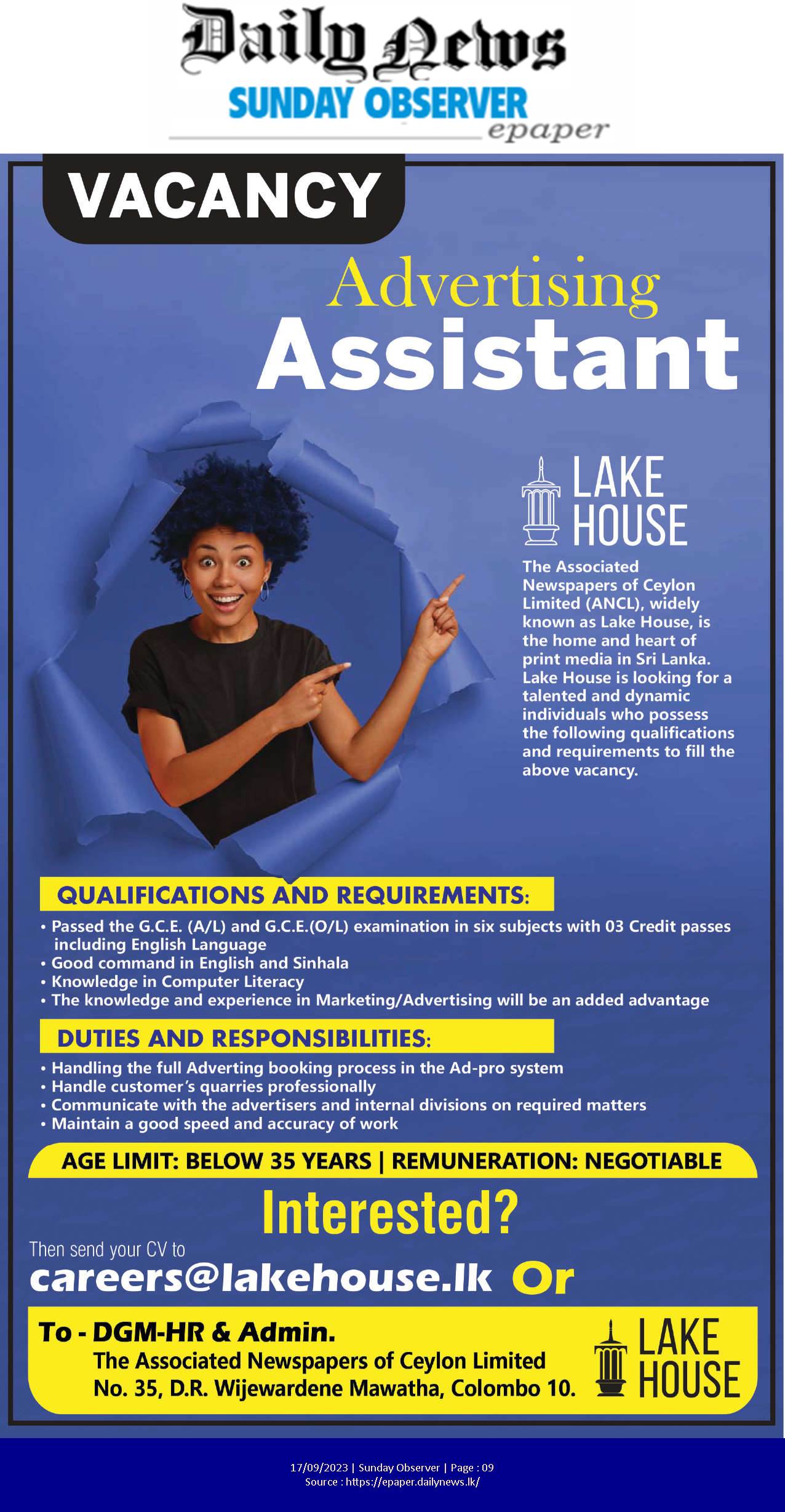 Advertising Assistant - Lake House