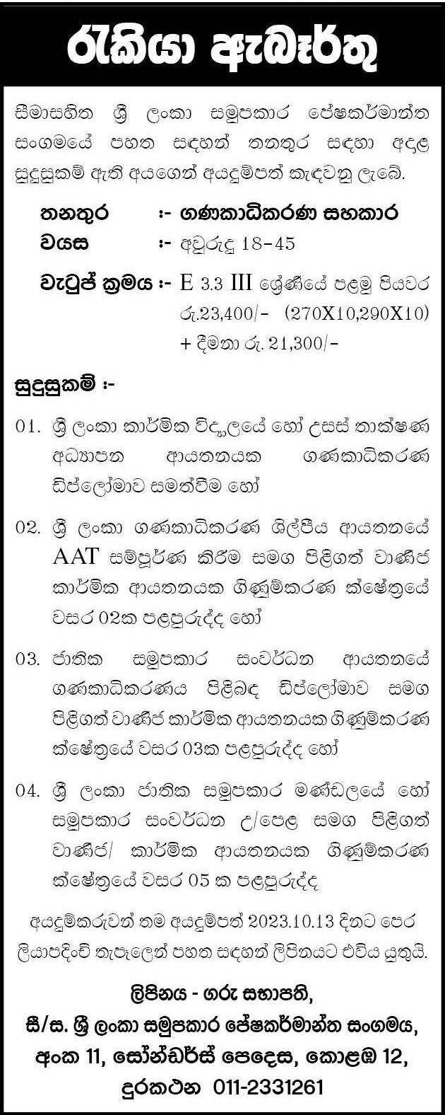Accountant - Sri Lanka Co-operative Textile Industry Association