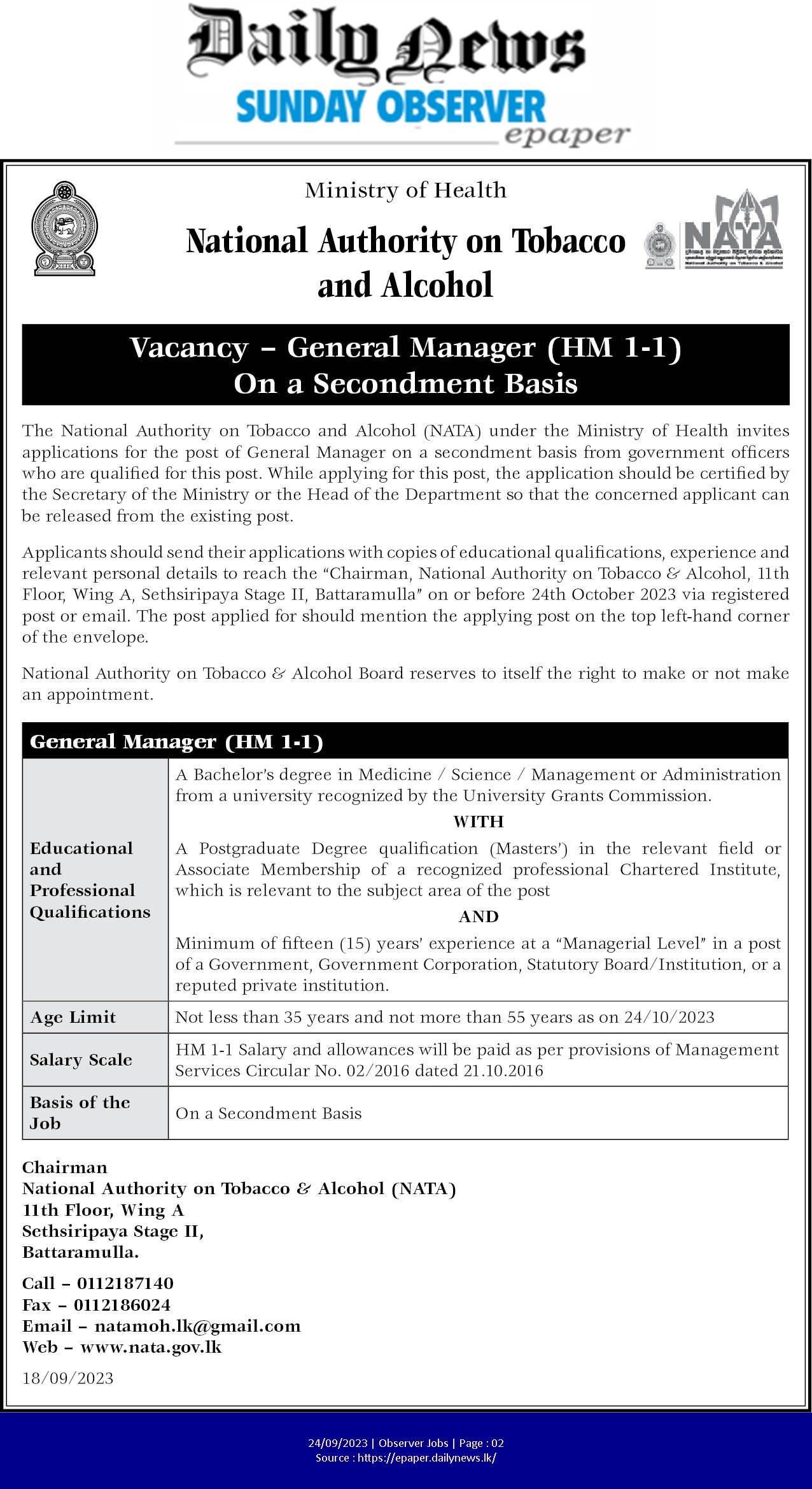 General Manager - National Authority on Tobacco and Alcohol