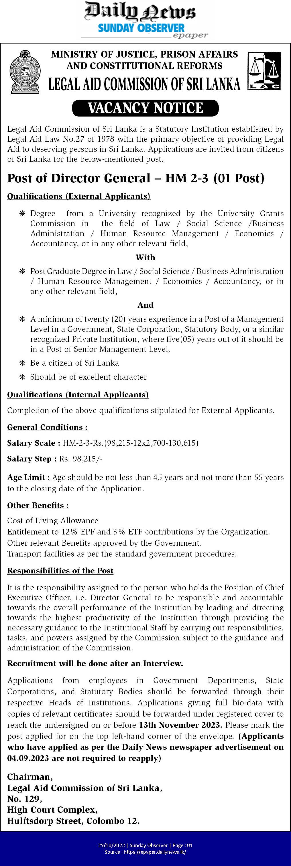 Director General - Legal Aid Commission of Sri Lanka