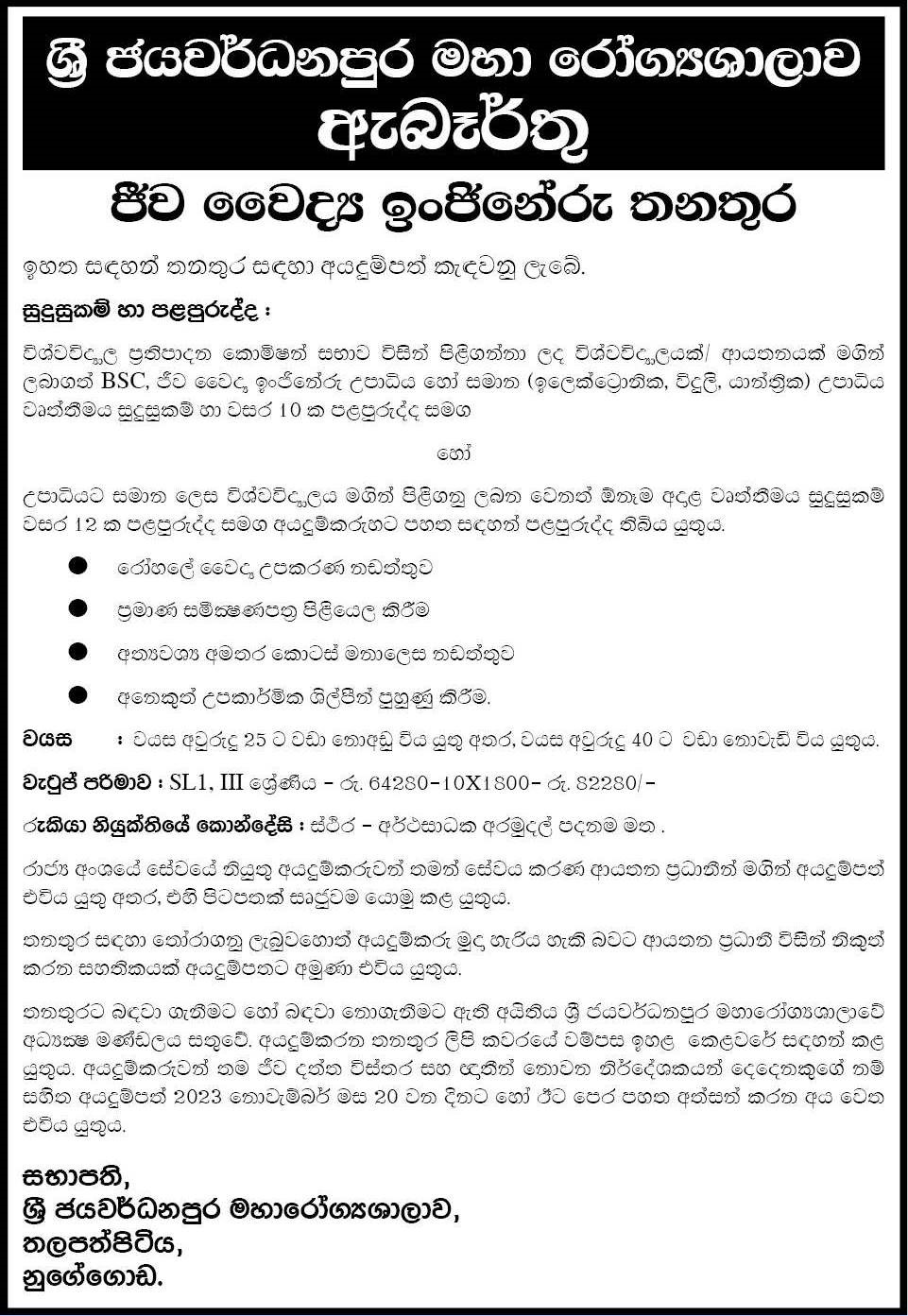 Biomedical Engineer - Sri Jayewardenepura General Hospital