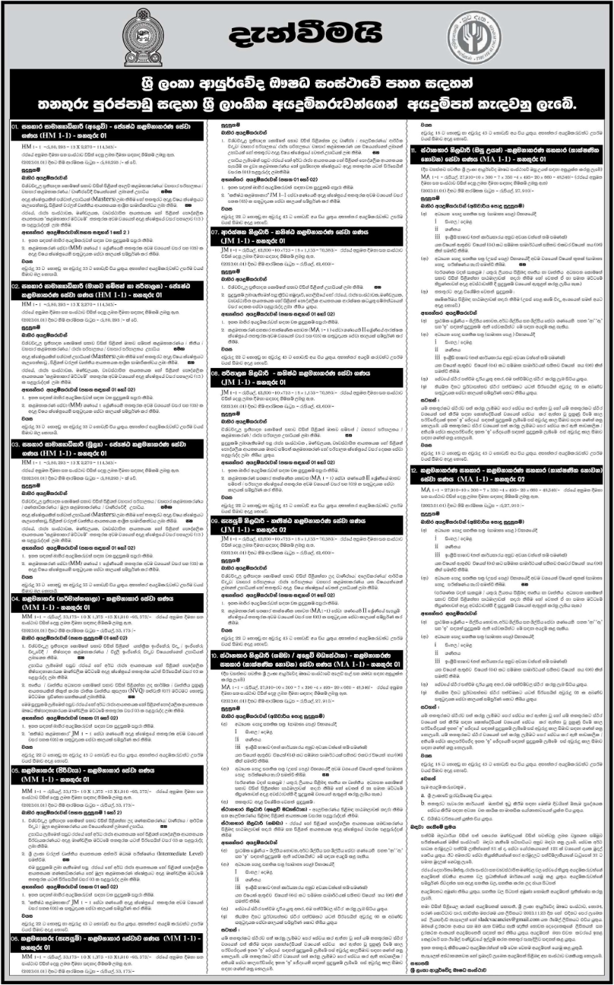 Management Assistant, Manager, Assistant General Manager, Administrative Officer - Sri Lanka Ayurvedic Drugs Corporation