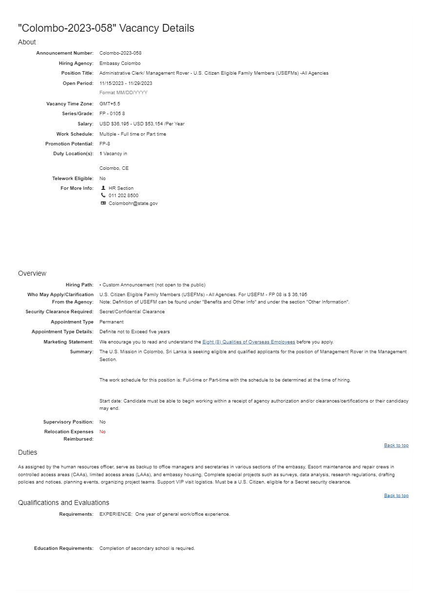 Clerk - American Embassy