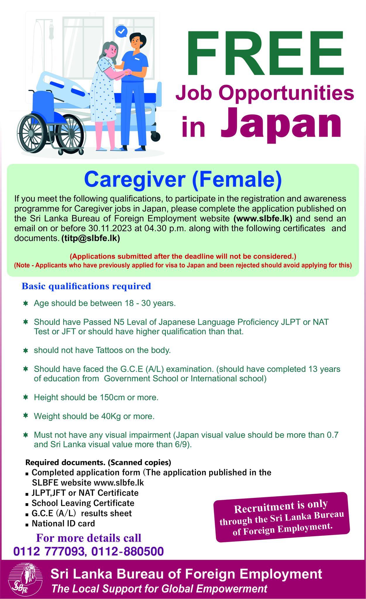 Caregivers (Japan) - Sri Lanka Bureau of Foreign Employment