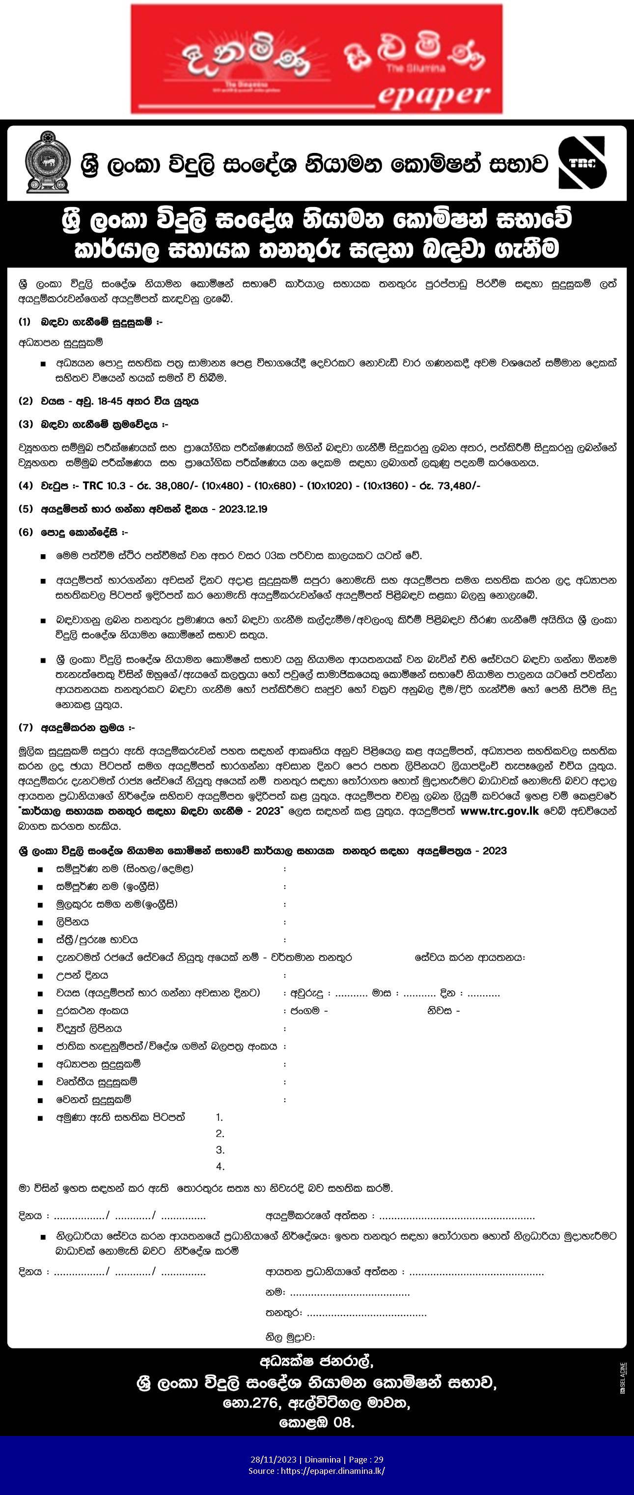 Office Assistant - Telecommunications Regulatory Commission of Sri Lanka