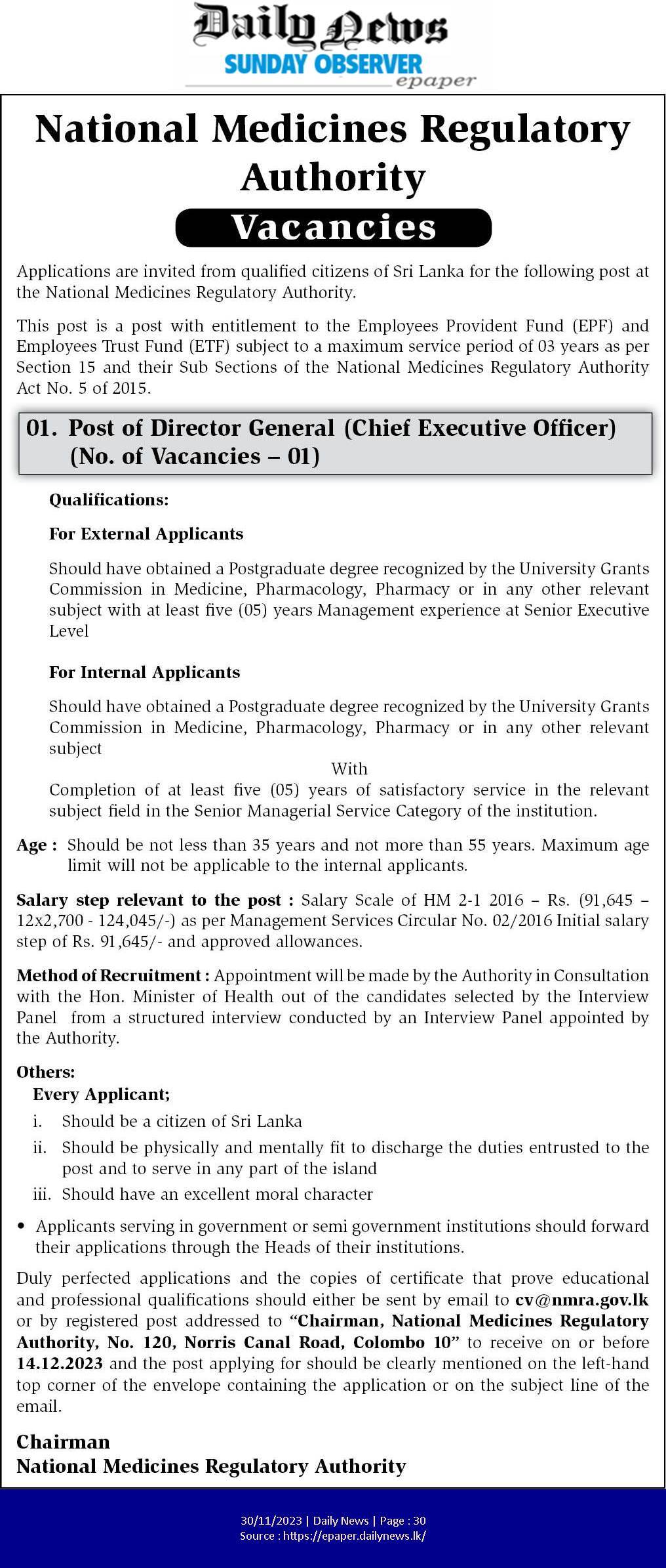 Director General - National Medicines Regulatory Authority
