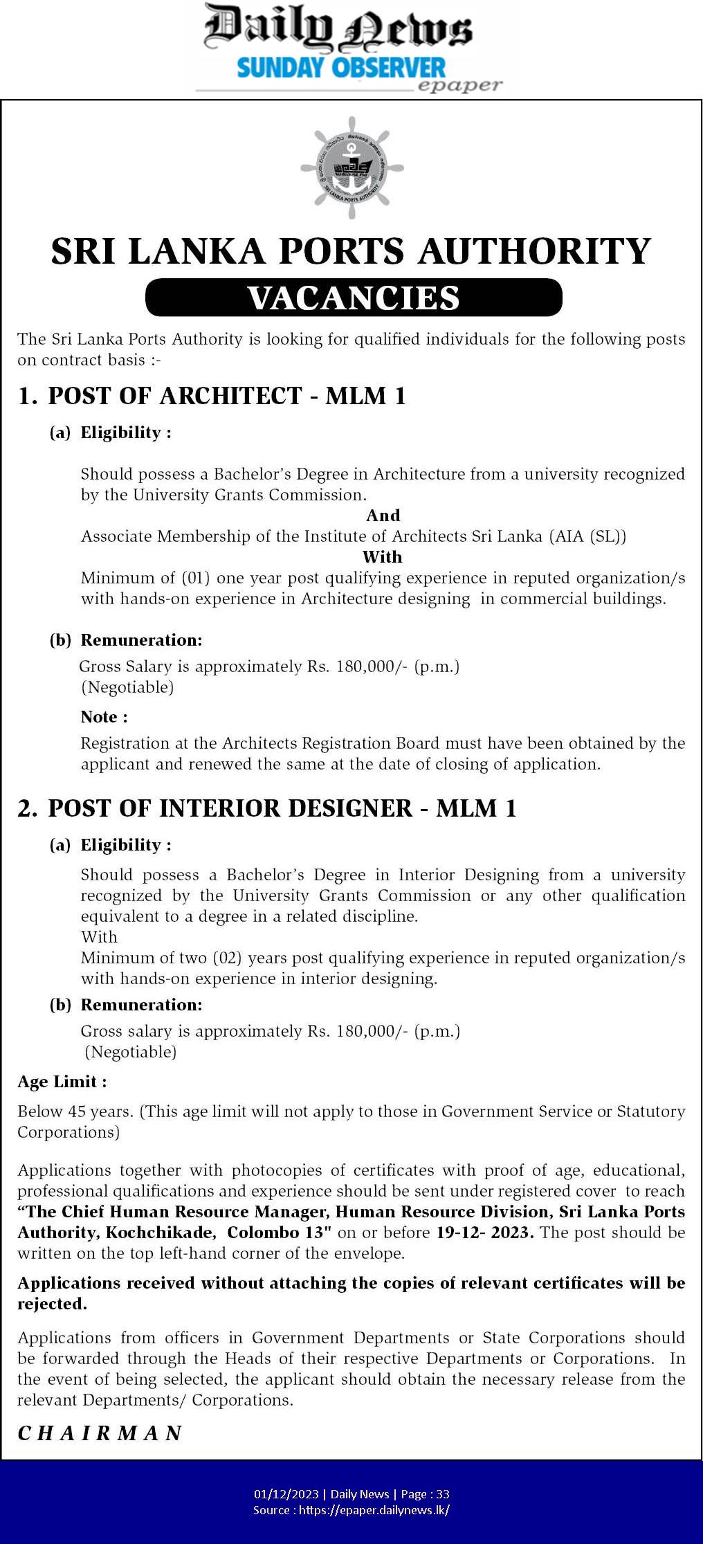 Architect, Interior Designer - Sri Lanka Ports Authority