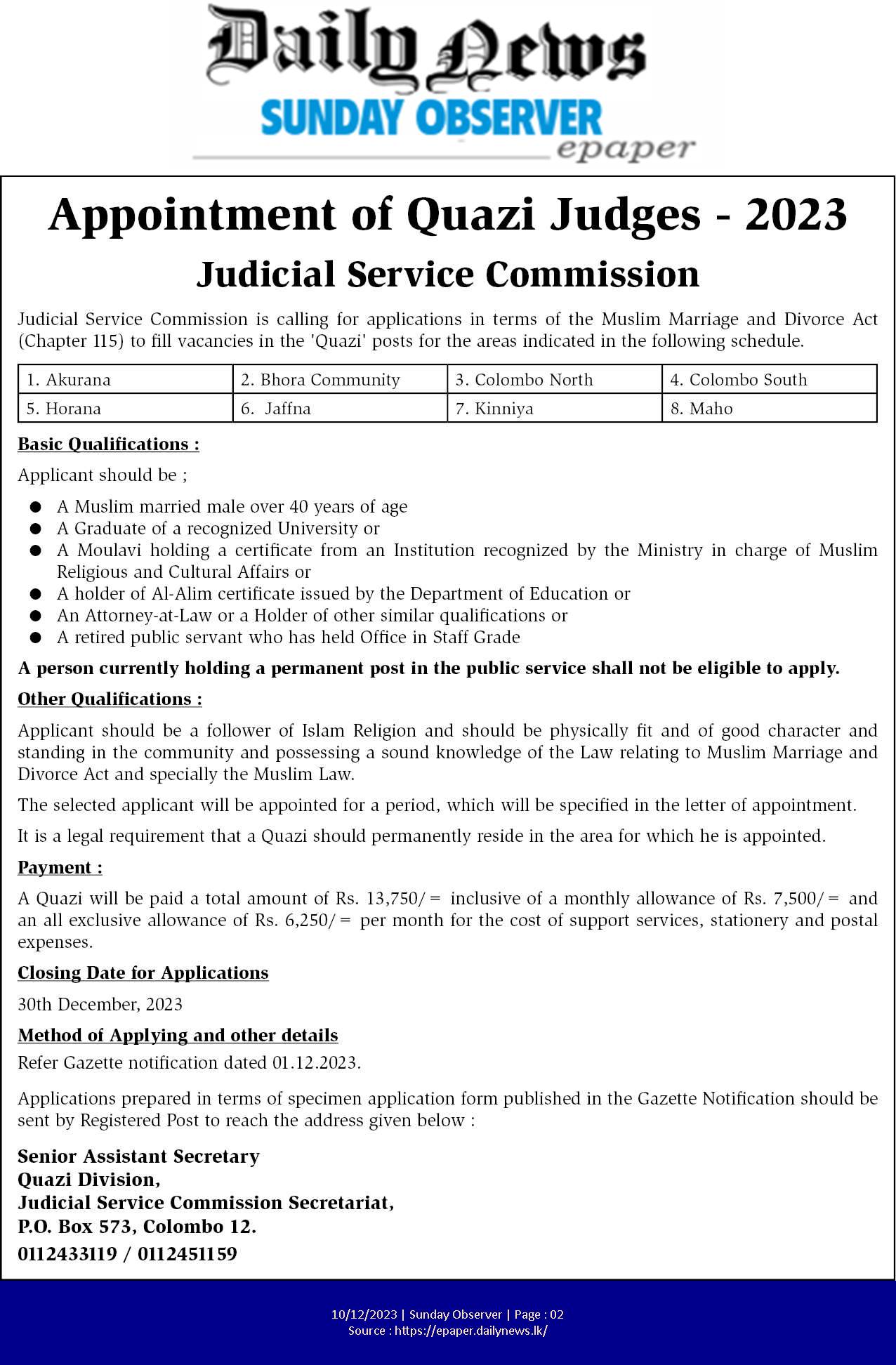 Quazi Judge - Judicial Service Commission