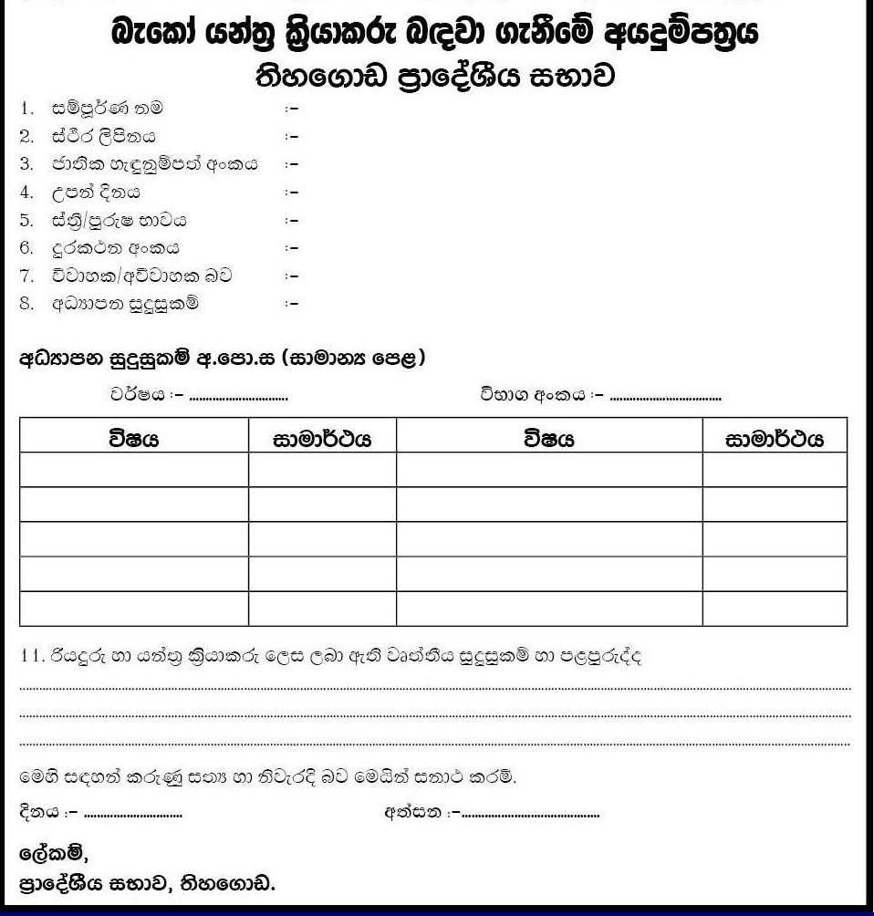Heavy Equipment Machine Operator - Tihagoda Pradeshiya Sabha