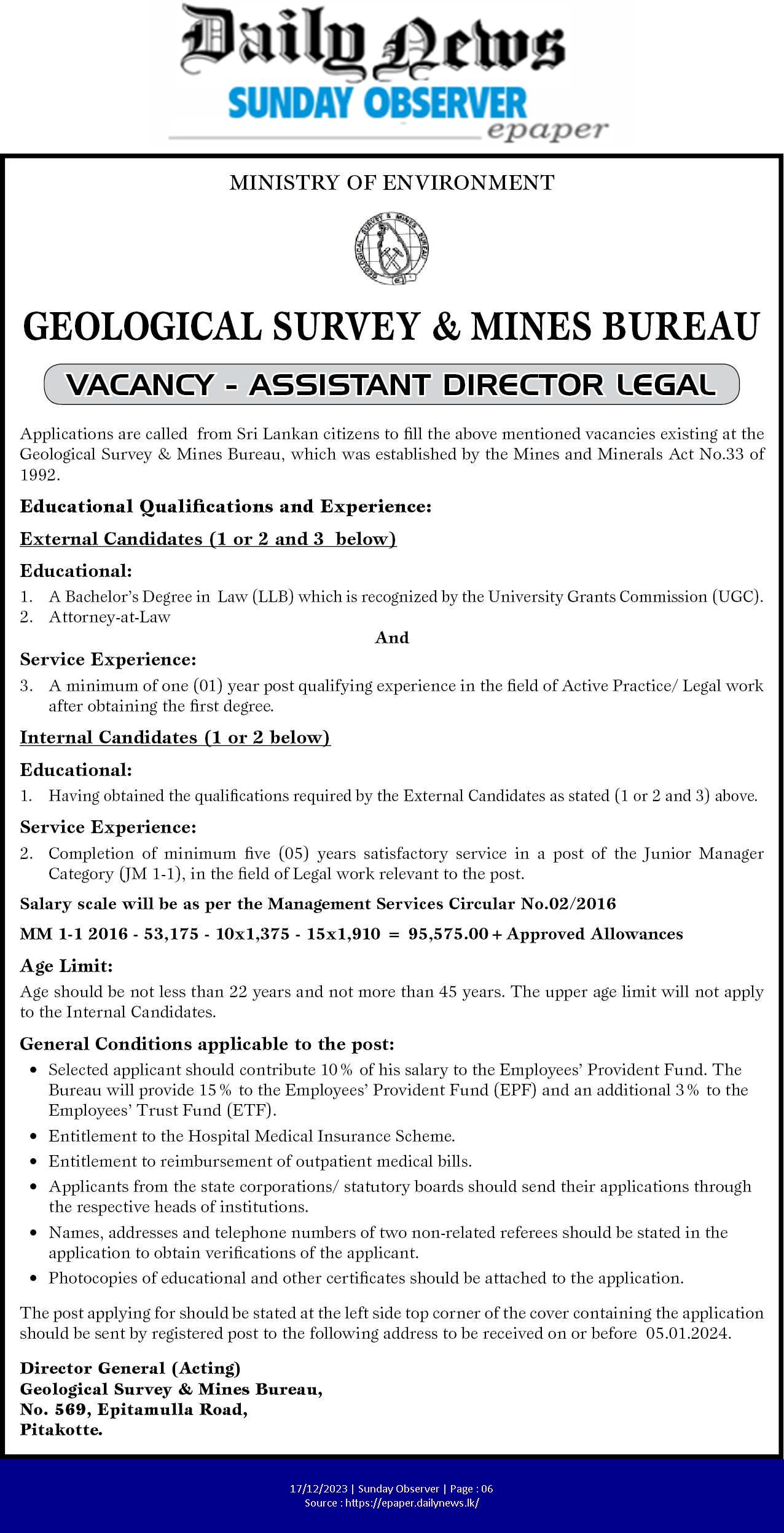 Assistant Legal Director - Geological Survey and Mines Bureau