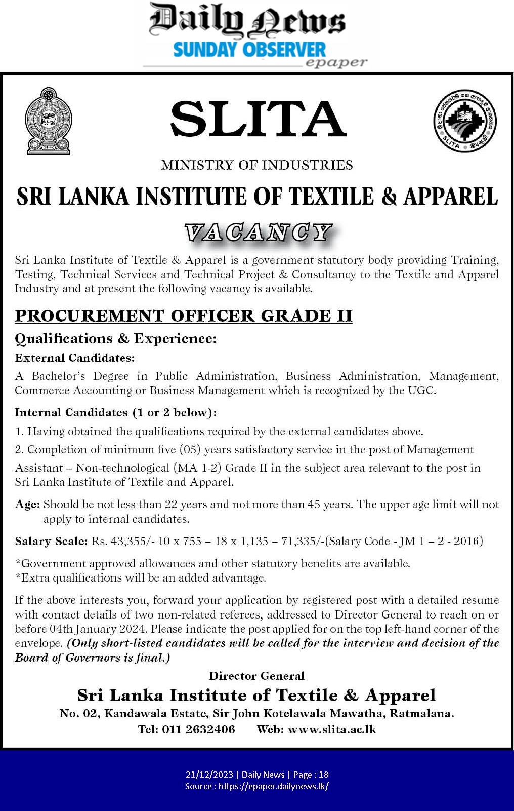 Procurement Officer - Sri Lanka Institute of Textile & Apparel