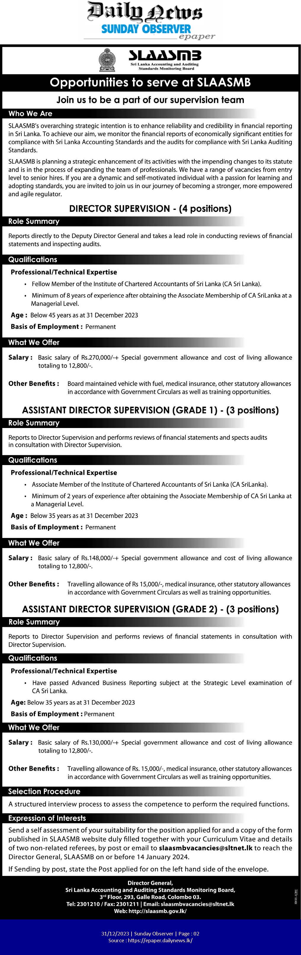 Director, Assistant Director - Sri Lanka Accounting and Auditing Standards Monitoring Board