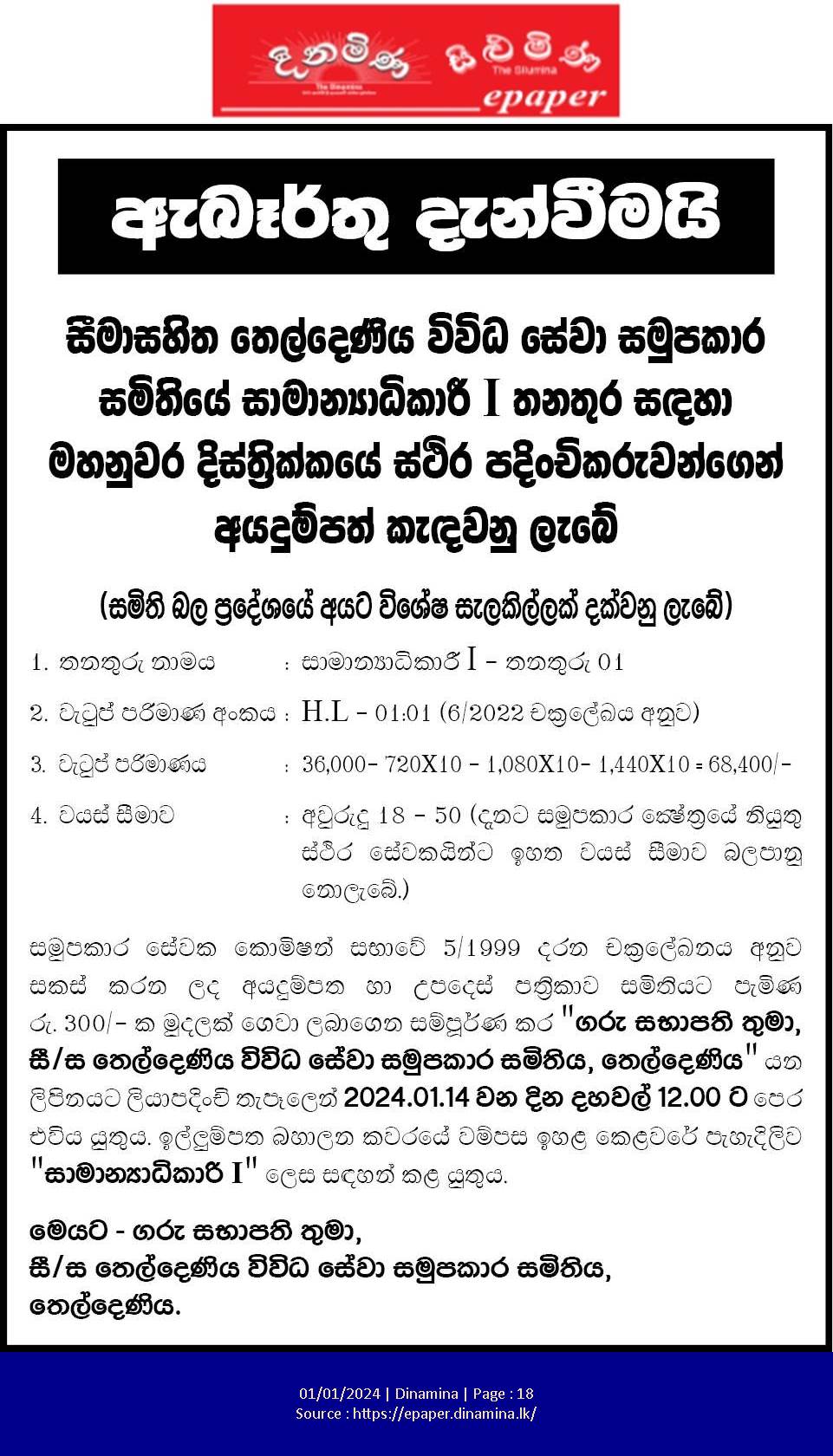 General Manager - Theldeniya Multipurpose Co-Operative Society